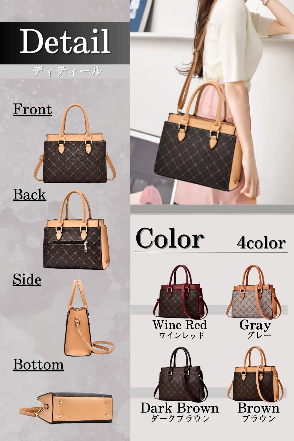 【様々なシーンで活躍】 カジュアルな日常使いから、お仕事、デート、旅行まで幅広く対応できるデザインです。友人へのギフトとしても喜ばれる、スタイリッシュなバッグです。