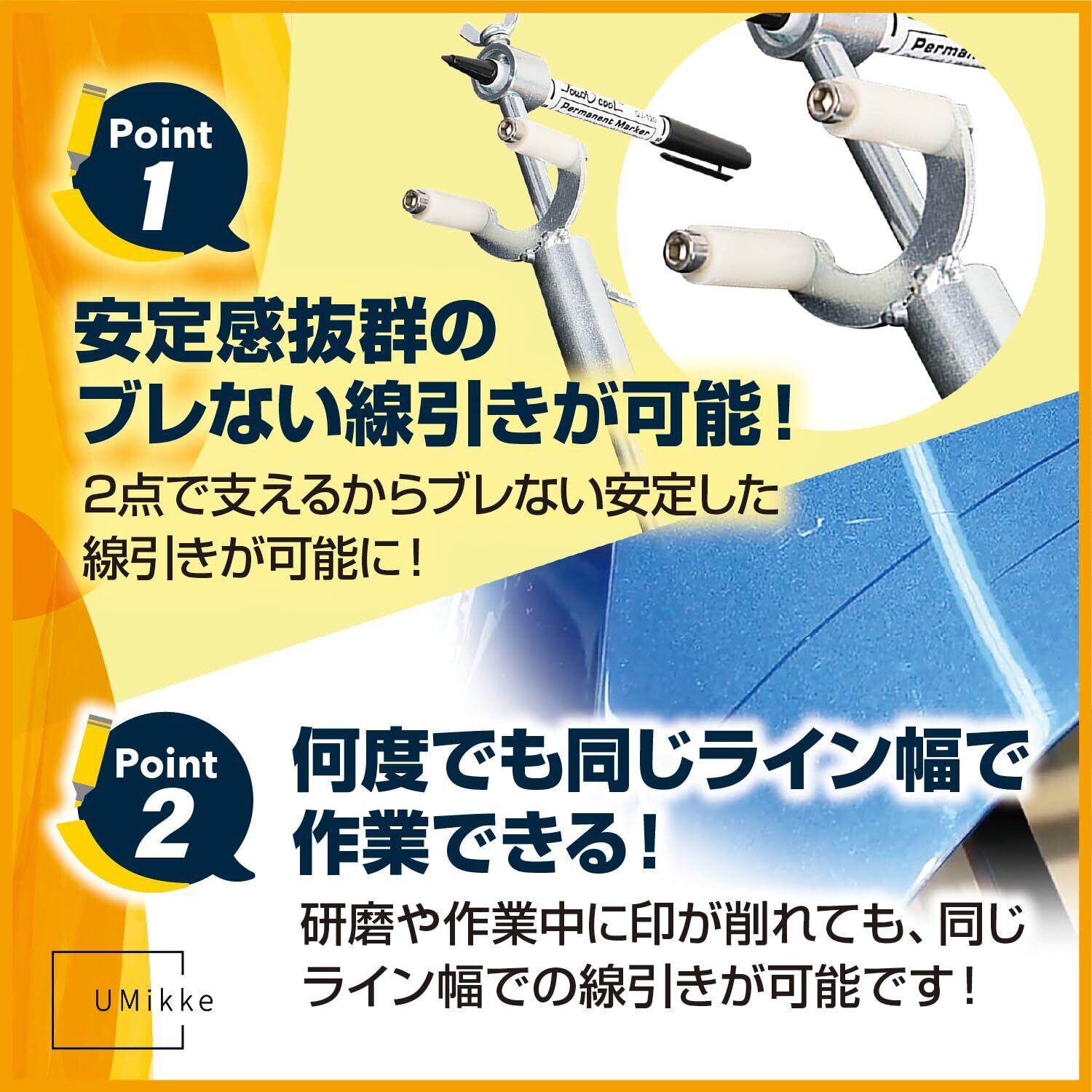 UMikke プレスライン アーチライナー デントリペアツール フェンダー マーキング マーカー付 ホイール塗装 鈑金塗装 板金パテ 板金工具 1セット