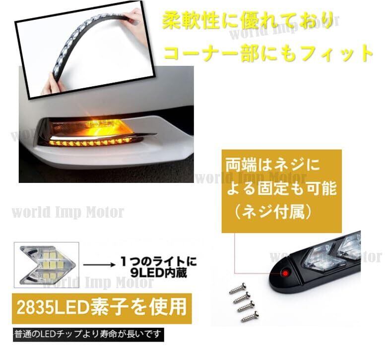 LED シーケンシャル 流れる ウインカー 9連 /12連 デイライト 12V 車 用 ライト 防水 2本セット 汎用 (12連 LED ブルー・アンバー)