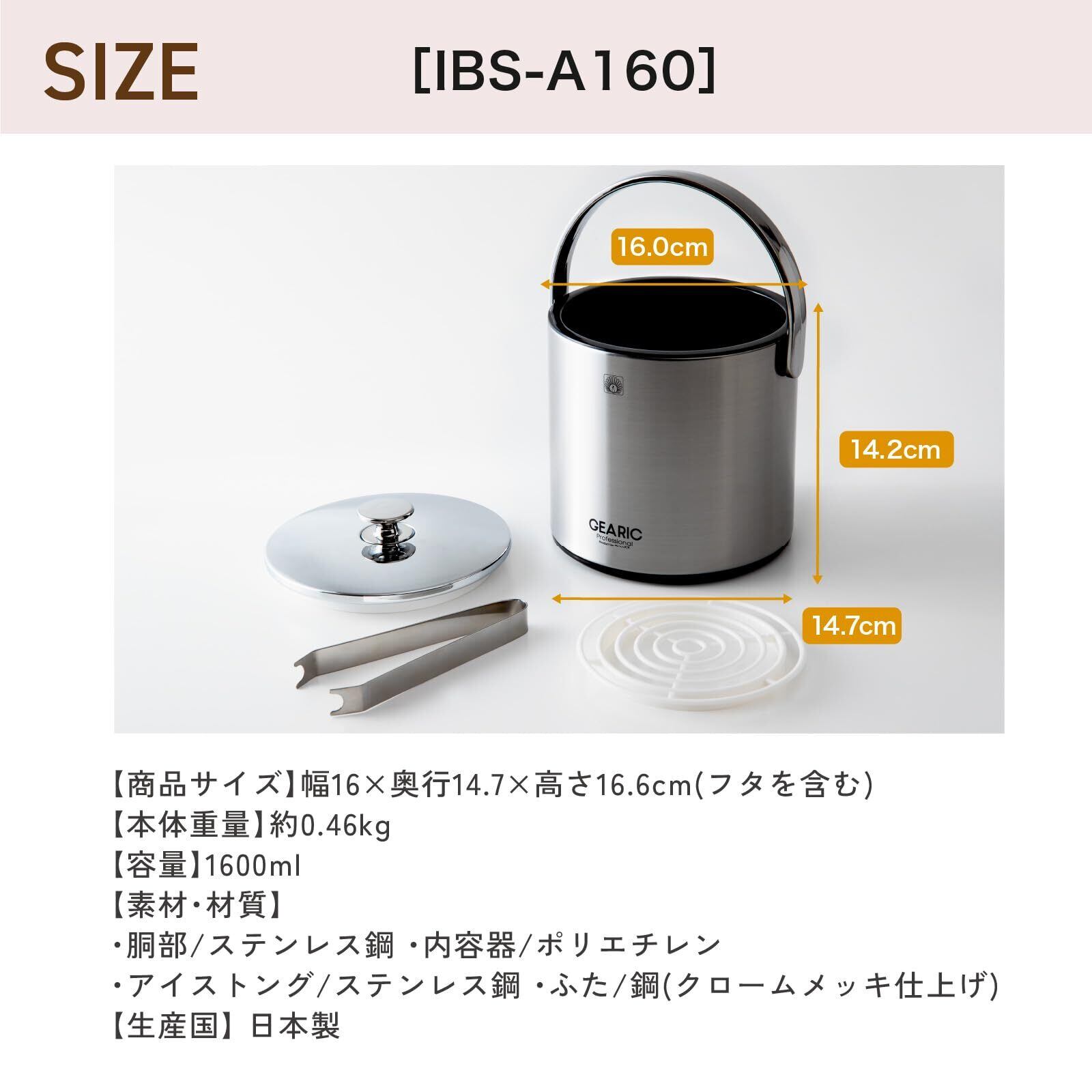 素材・材質:ふた/鋼 (クロームメッキ仕上)、内容器/ポリエチレン、銅/ステンレス鋼、アイストング/ステンレス鋼