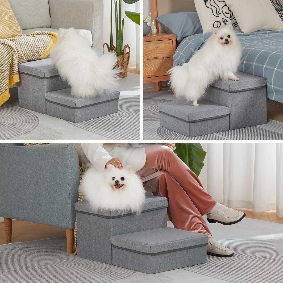 【2階段設計・収納でき】:ステップの中の無駄なく活用、ワンコのグッズやお手入れ用品をスッキリ収納できます。
