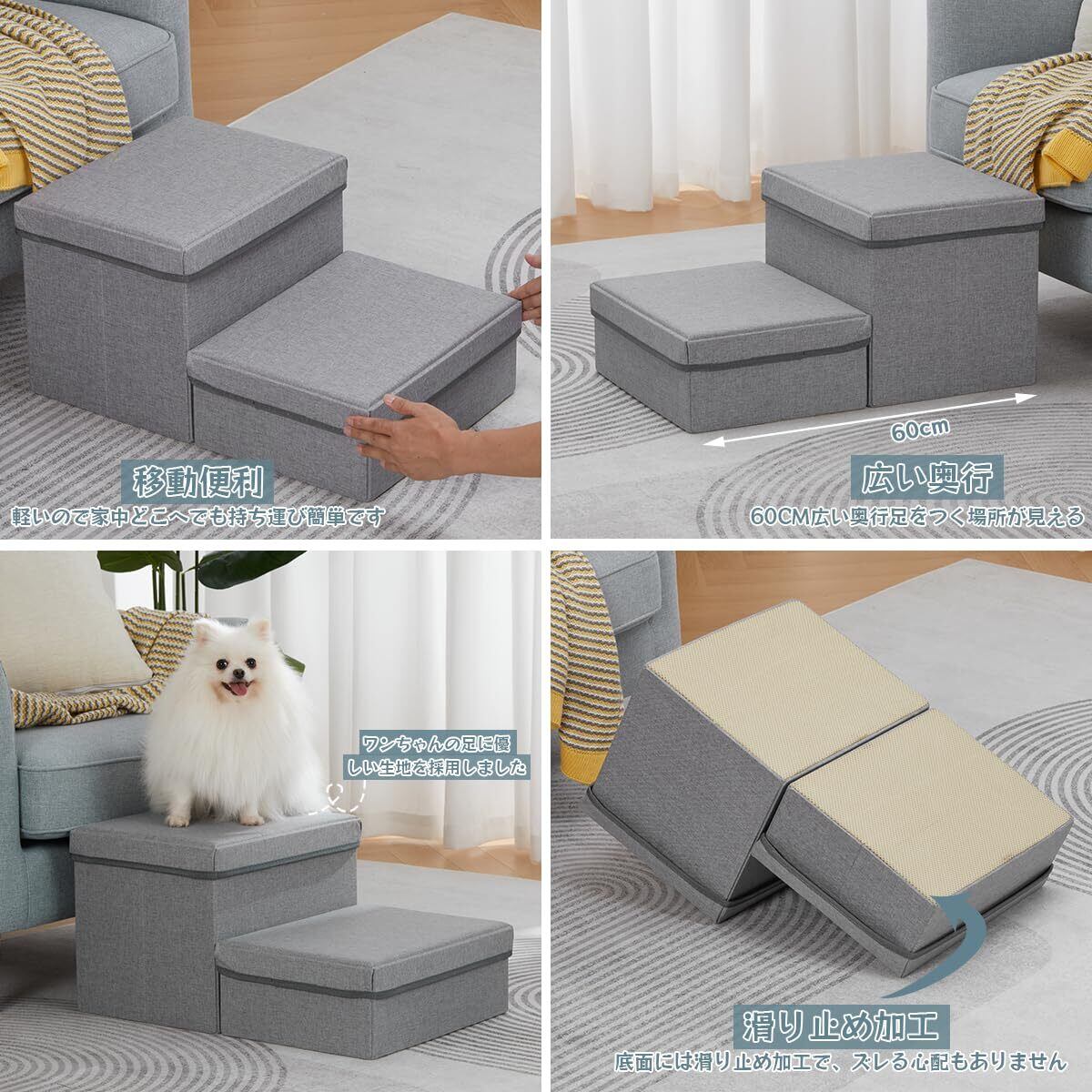 ドッグステップ 犬 ペット用階段 2段 奥行大幅に広く改善 ペット ステップ 耐荷重30KG 折り畳収納 ヘルニア 小型犬 老犬介護 ケガ防止 滑り止め (2段-アップグレード版灰) (2段-グレー)