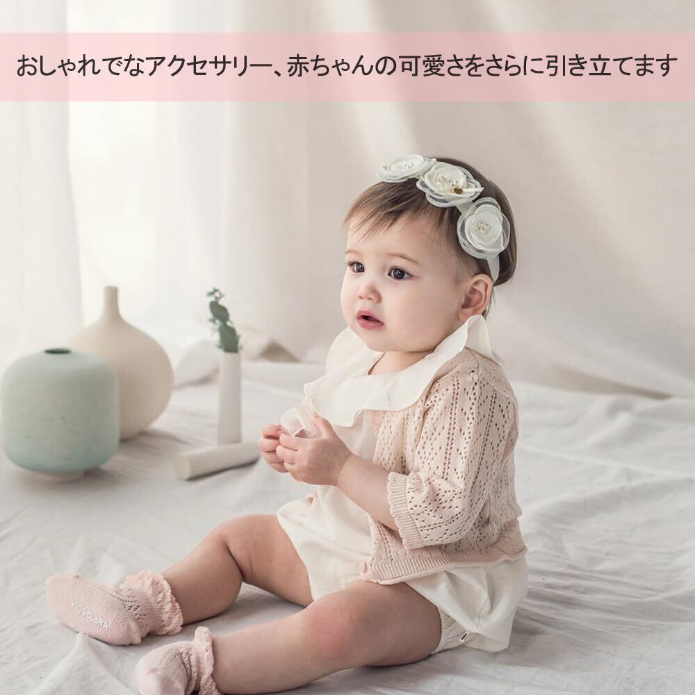 【優雅なレースデザイン】 上品なレースバンドは、女の子の魅力を引き出し、かわいらしさをプラスします。柔らかな素材で、赤ちゃんの繊細な肌にも優しくフィットし、心地よい着用感を提供します。