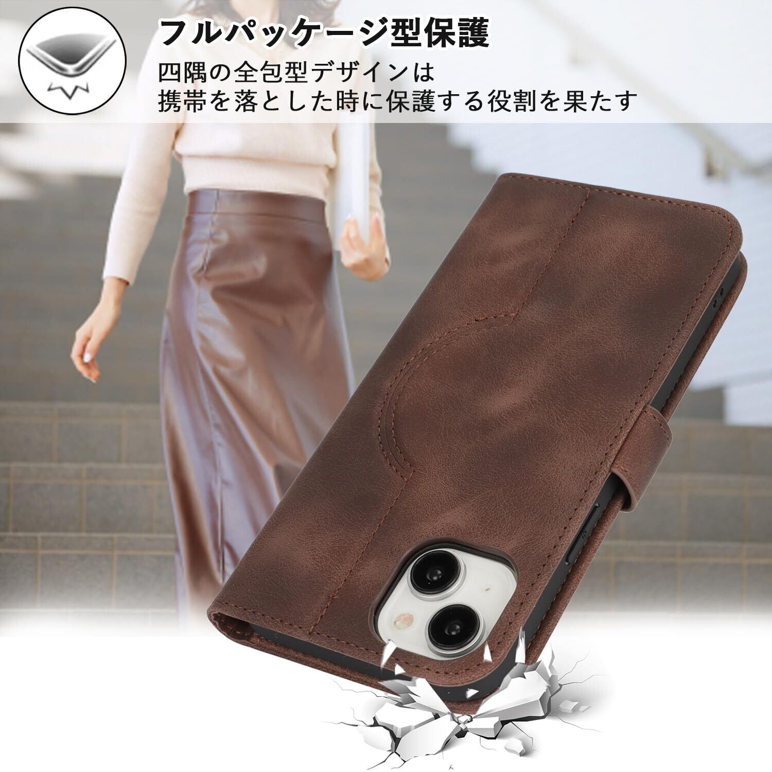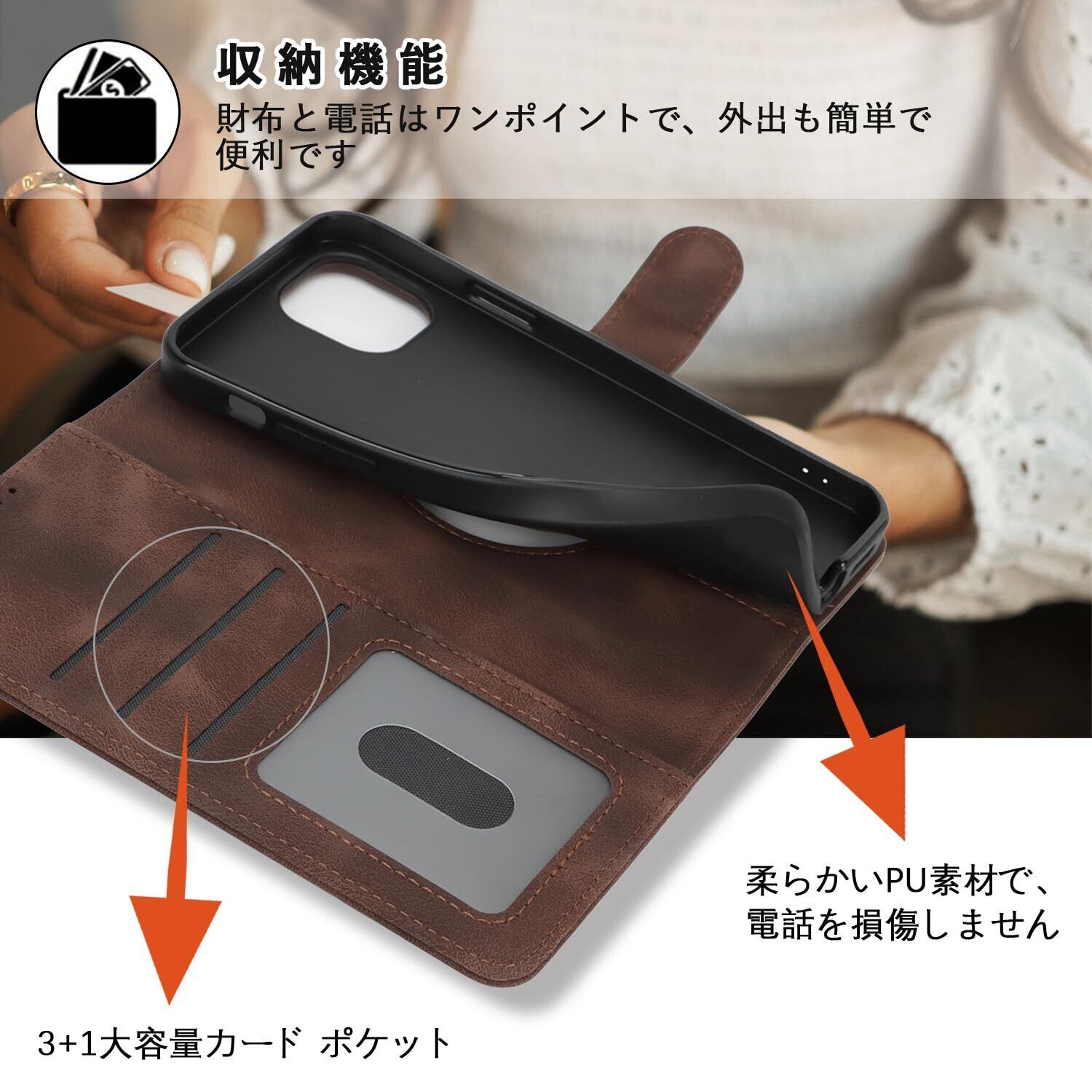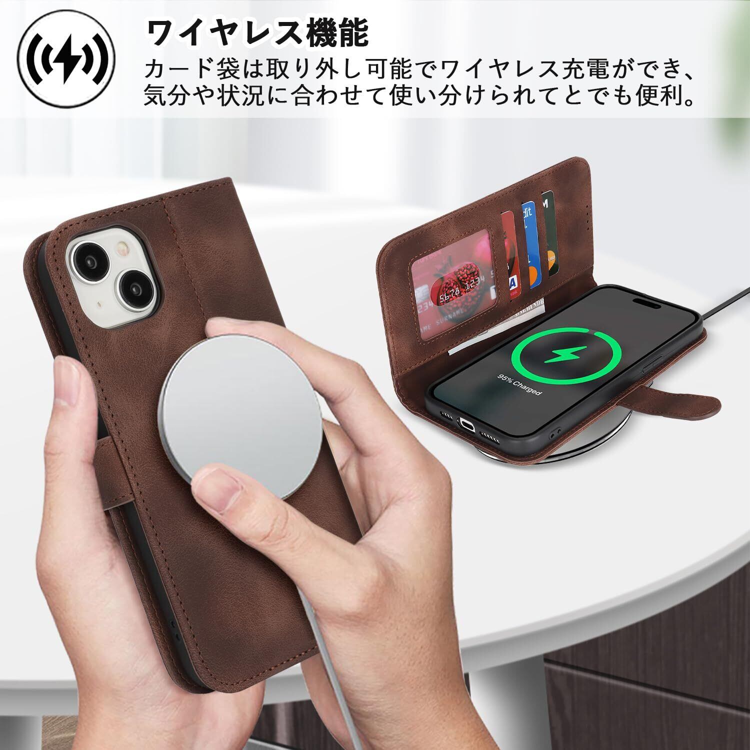 【Hamany】 対応 iPhone 15 ケース Magsafe対応 あいふおん15ケース ワイヤレス充電対応 カード収納 スタンド機能 マグネット式 いphone15 ケース 手帳型 耐衝撃 耐久性 耐摩擦 携帯ケース iphone 15 レザー -スエードの質感ダークブラウン