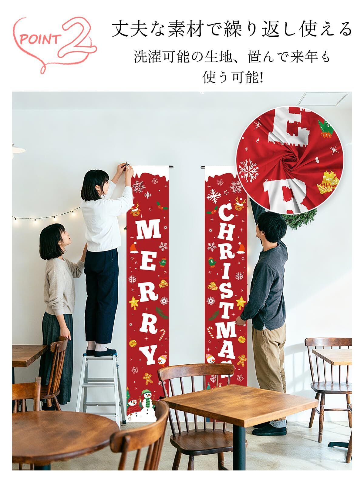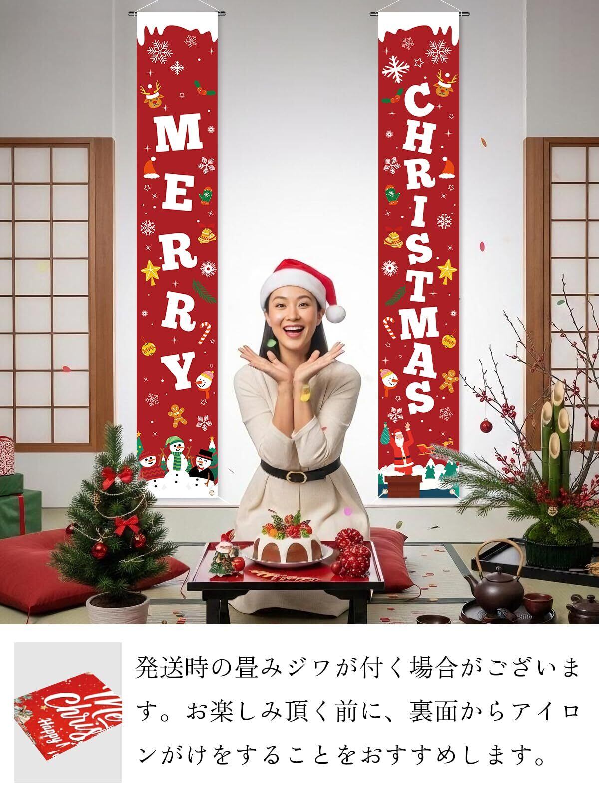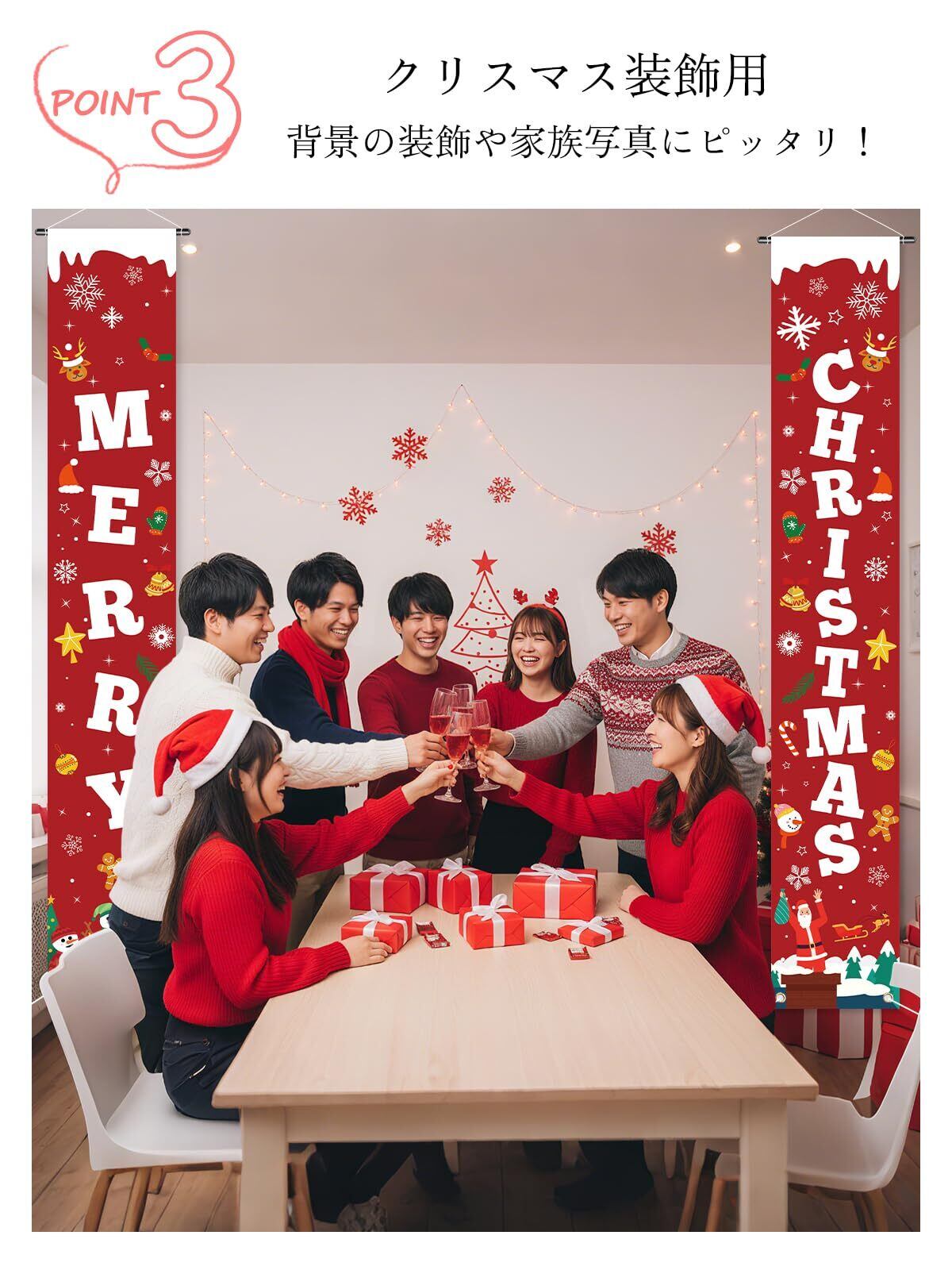 Paready クリスマス 玄関飾り クリスマス飾り タペストリー ドアバナー Merry Christmas ポスター 長尺 玄関 装飾 壁掛け カーテン フラッグ 吊り下げ 屋内 屋外 サンタ 玄関デコレーション 180*30cm 雪だるま 赤