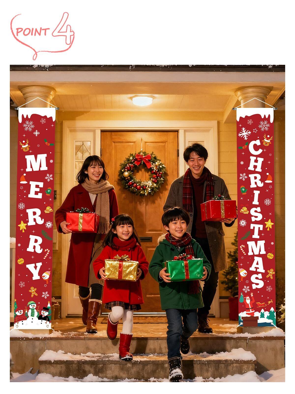 クリスマス玄関飾り:かわいいサンタさんや雪だるまがプリントされ、クリスマスをテーマにした玄関飾りです。壁に掛けるだけで、ぱっとクリスマスの雰囲気を素敵に演出してくれます。目を引くクリスマスポスターを飾り、楽しいクリスマスと新年を迎えましょう!