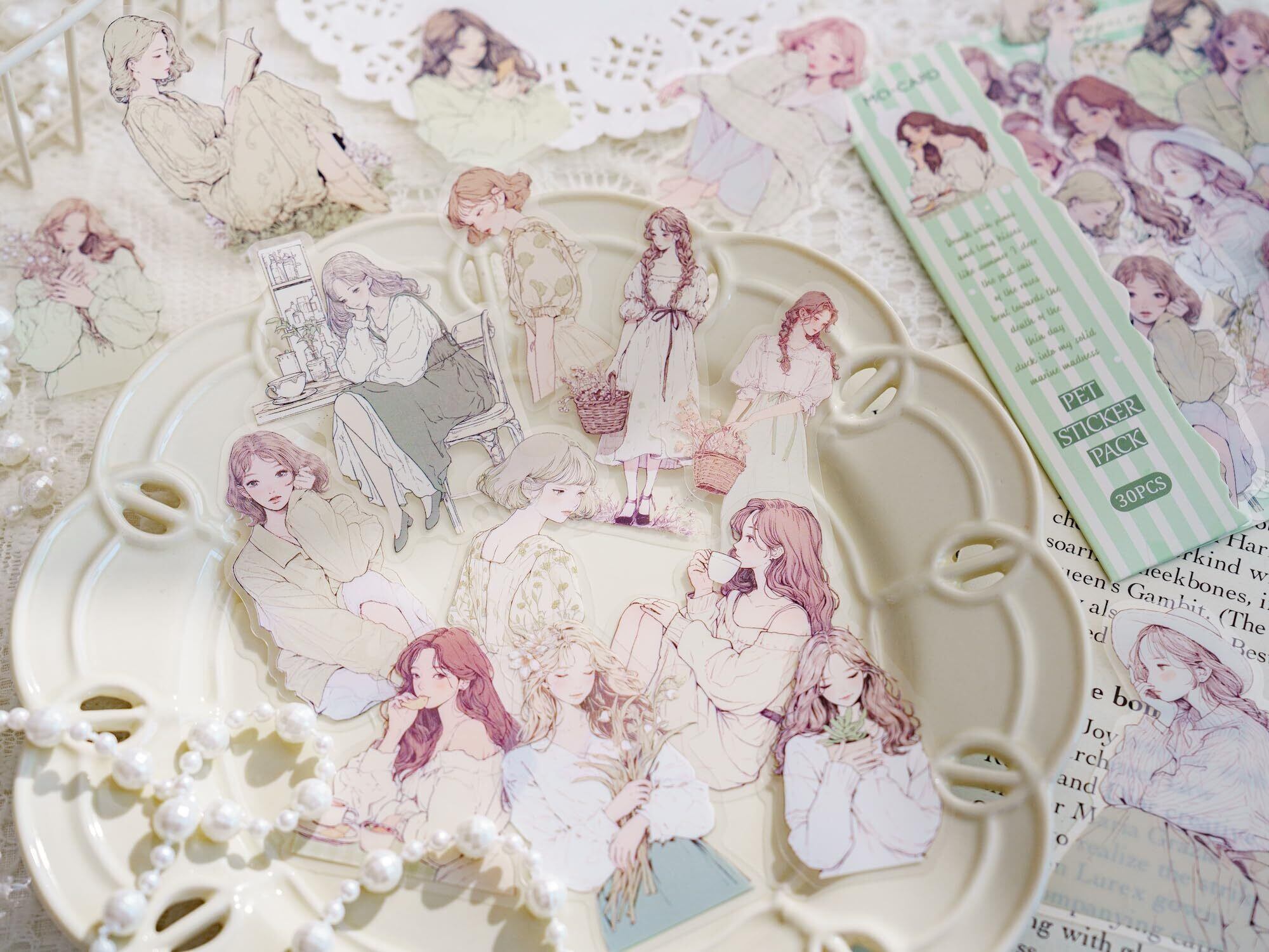 60枚 シール フレークシール コラージュ 素材 ペーパー 素材紙 レースユートピアステッカー レトロファッショナブルな女の子たち 海外 韓国 シール帳 ,メモ用紙 ノート素材、日記装飾用品 (bohetianjiu)