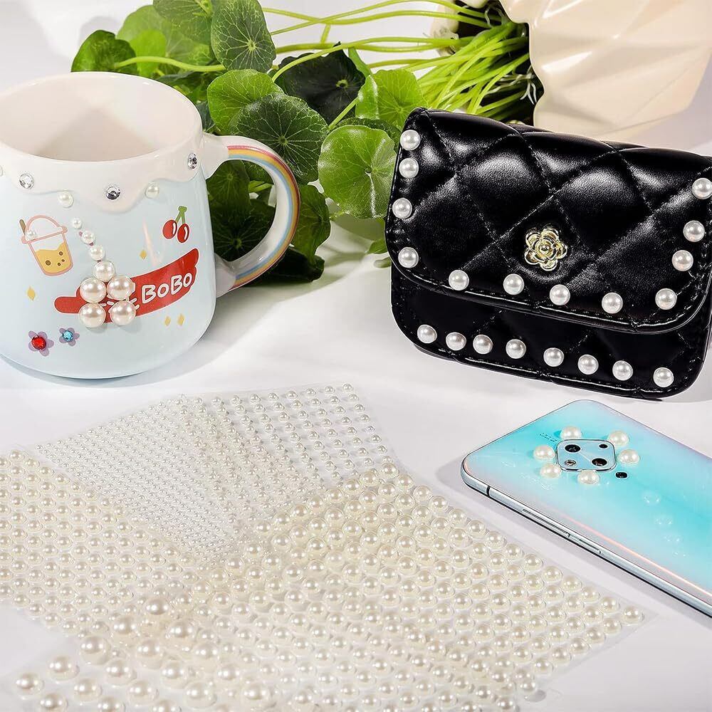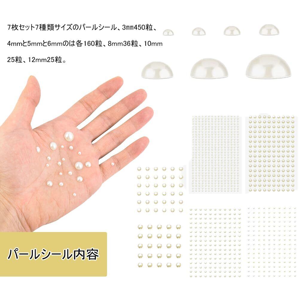【多様なサイズ】7種類サイズのパールステッカー。3㎜450粒、4mmと5mmと6mmのは各160粒、8mm36粒、10mm25粒、12mm25粒。さまざまなデコレーションニーズに対応します。