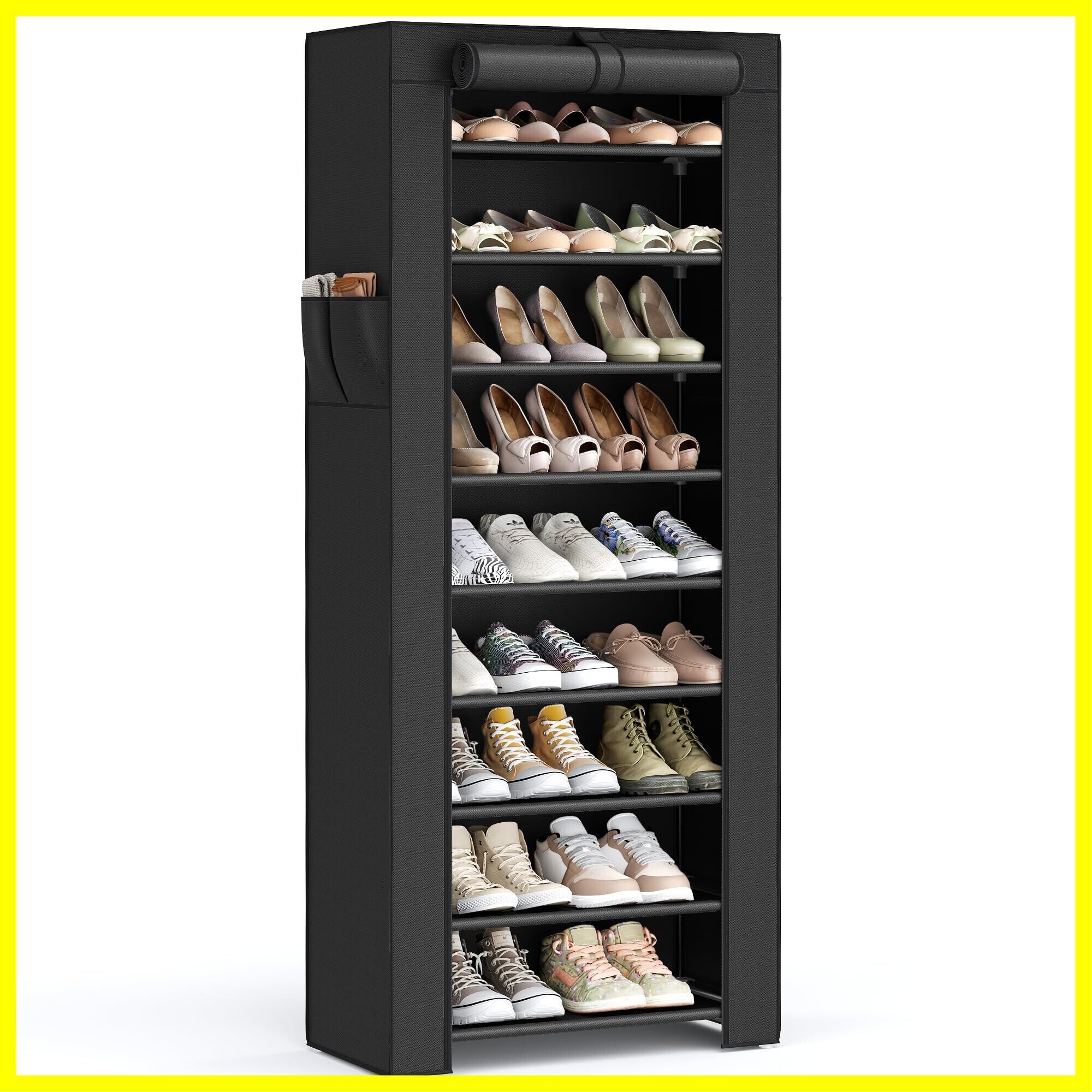 SONGMICS シューズラック 9段 不織布カバー付き 27-35足の靴用の靴収納棚 エントリーウェイ スニーカー ハイヒール フラットシューズ ブーツに適しています 28×58×160cm ブラック RXJ10H01
