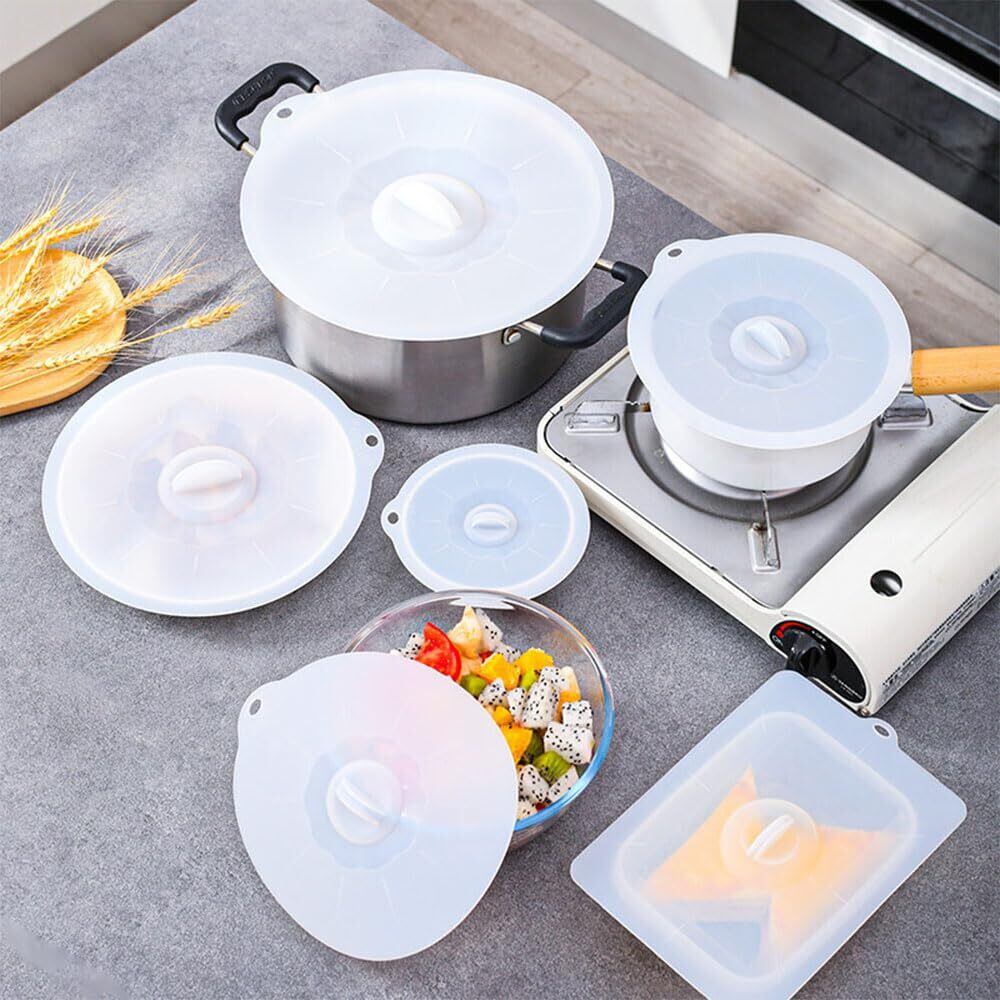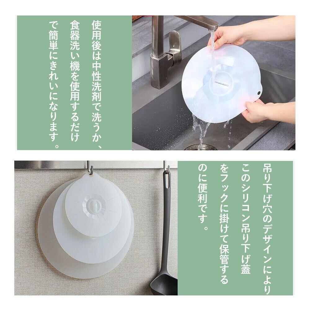DFsucces シリコン蓋 3枚セット 半透明落し蓋 シリコンラップ 密封 コンテナ 吸着力 フライパン蓋 耐熱耐冷 防塵蓋 調理の貯蔵カバー 電子レンジ/食洗機対応 食品保存 収納便利 再利用可能 キッチン用品