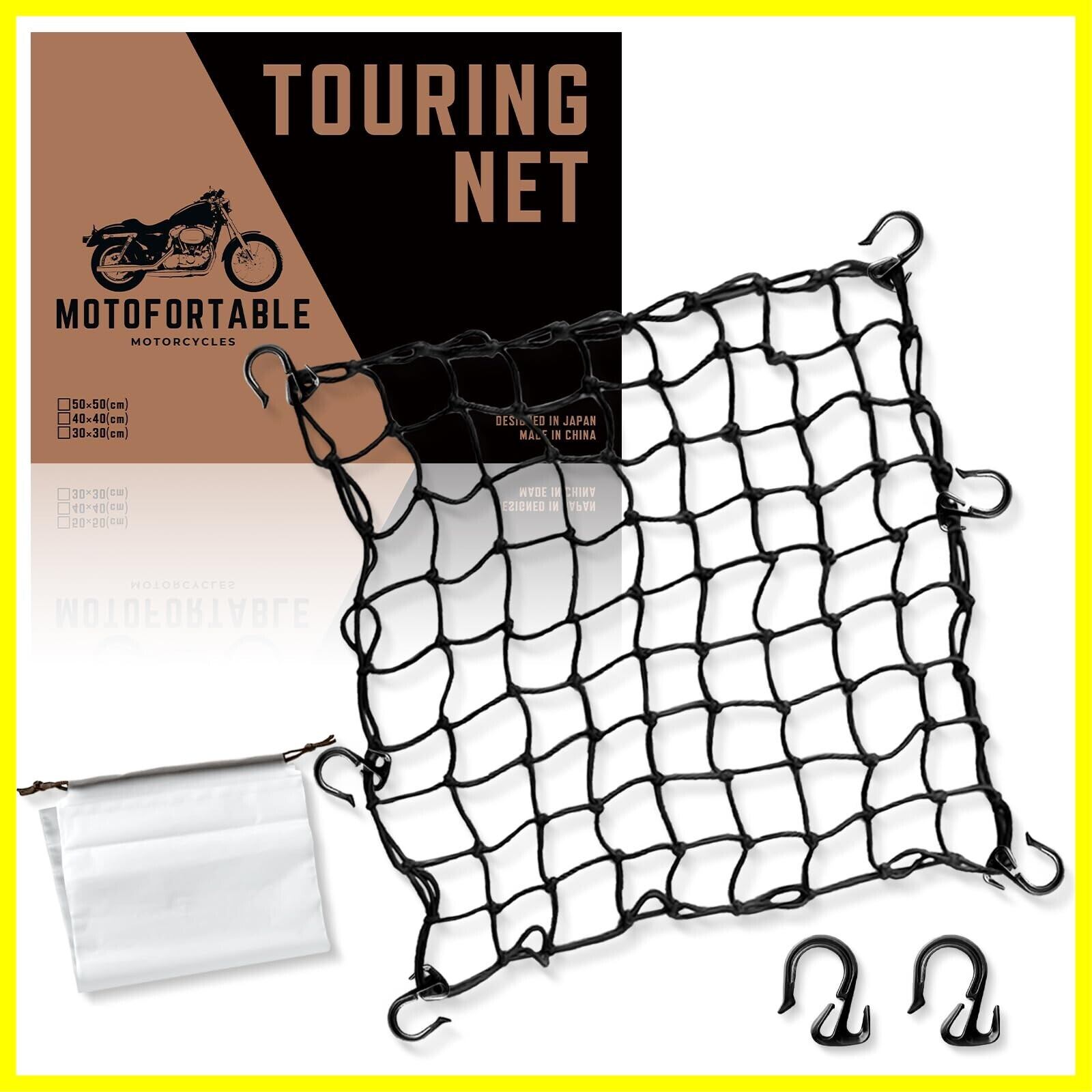 【走りに自由を】 MOTOFORTABLE ツーリングネット バイクネット バイク 荷物 ツーリング キャンプ 荷崩れ防止 予備フック2個付属 防水収納袋 3サイズ(50cm×50cm)