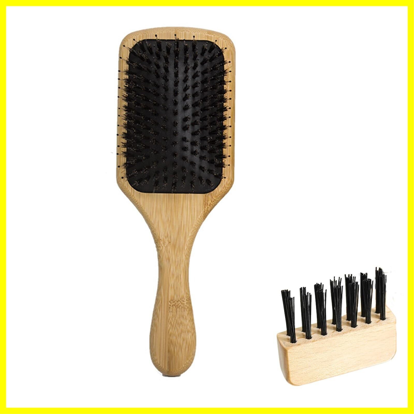 DFsucces ヘアブラシ 豚毛くし 楠竹 櫛 エアクッションコーム 頭皮マッサージ 絡まないブラシ サラサラ 髪質改善 シルク髪サラサラ (25*8.7cm)