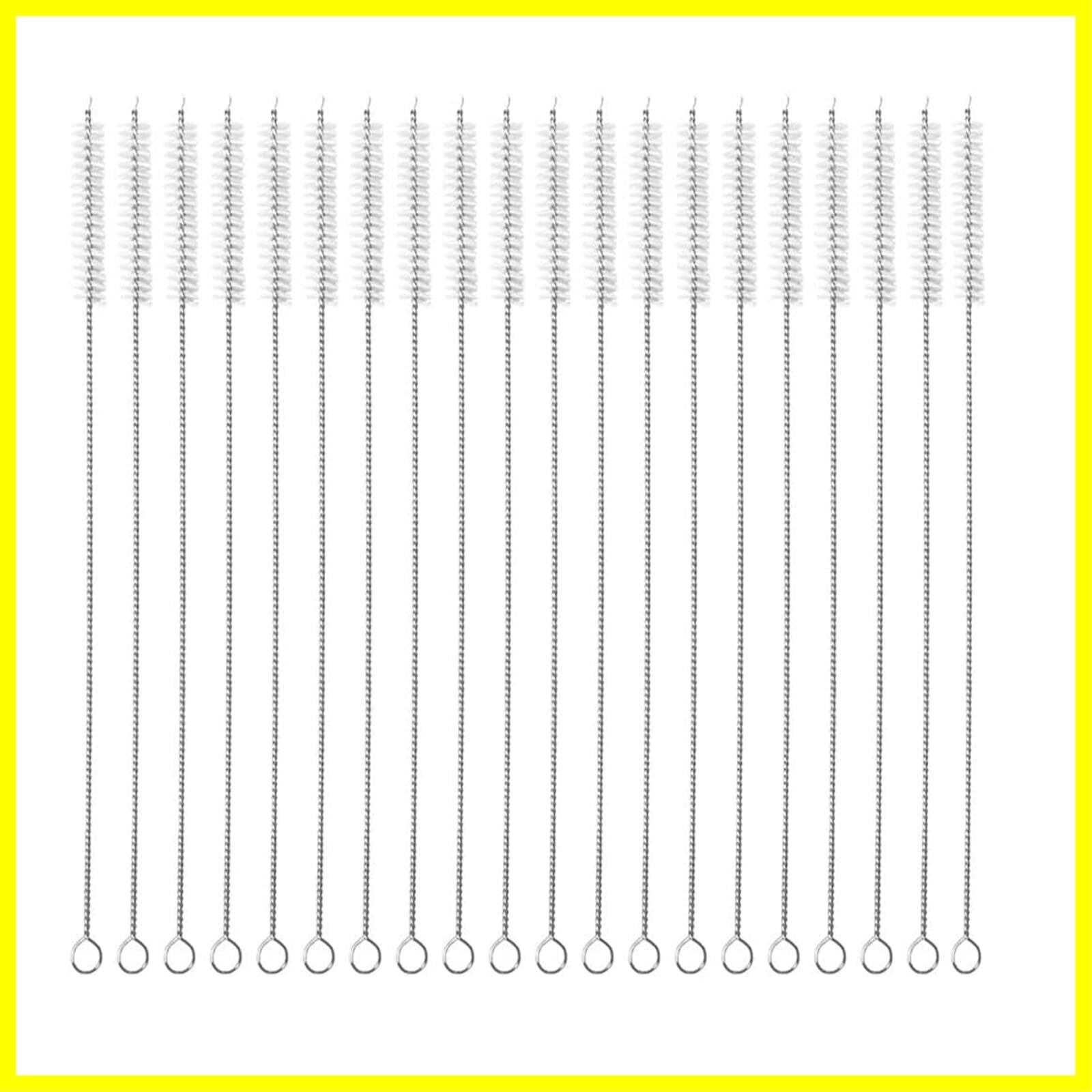 DFsucces ストローブラシ 哺乳瓶ブラシ 極細ナイロン ステンレス製 細いストローの中まで洗えて衛生的 (300mm-20本セット)