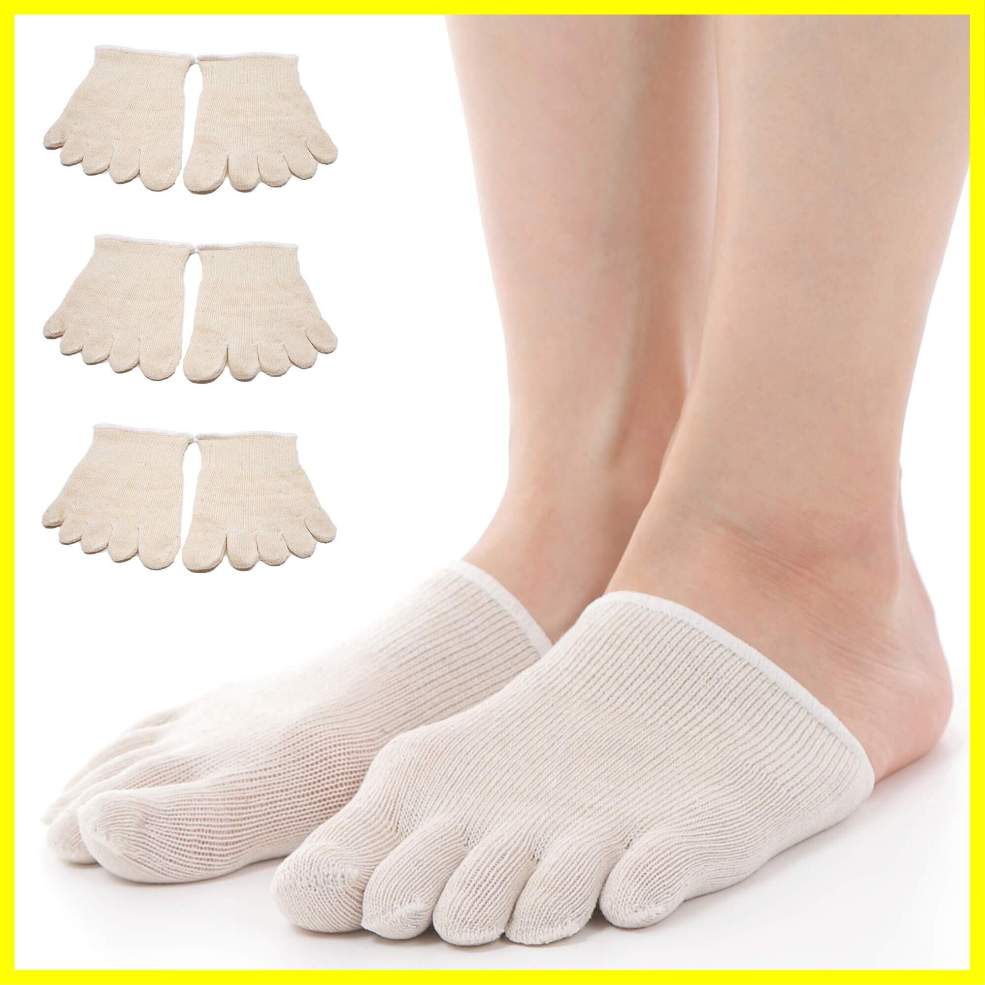 重ね履きにおすすめのシルク混のつま先だけのソックスの3足セットです。