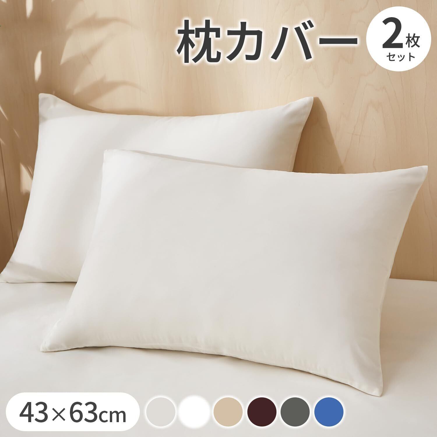 AZRA 枕カバー 2枚セット 43 63 ピローケース ピーチスキン加工 ファスナー式 チャック付き おしゃれ オールシーズン 通気 速乾 アイボリー