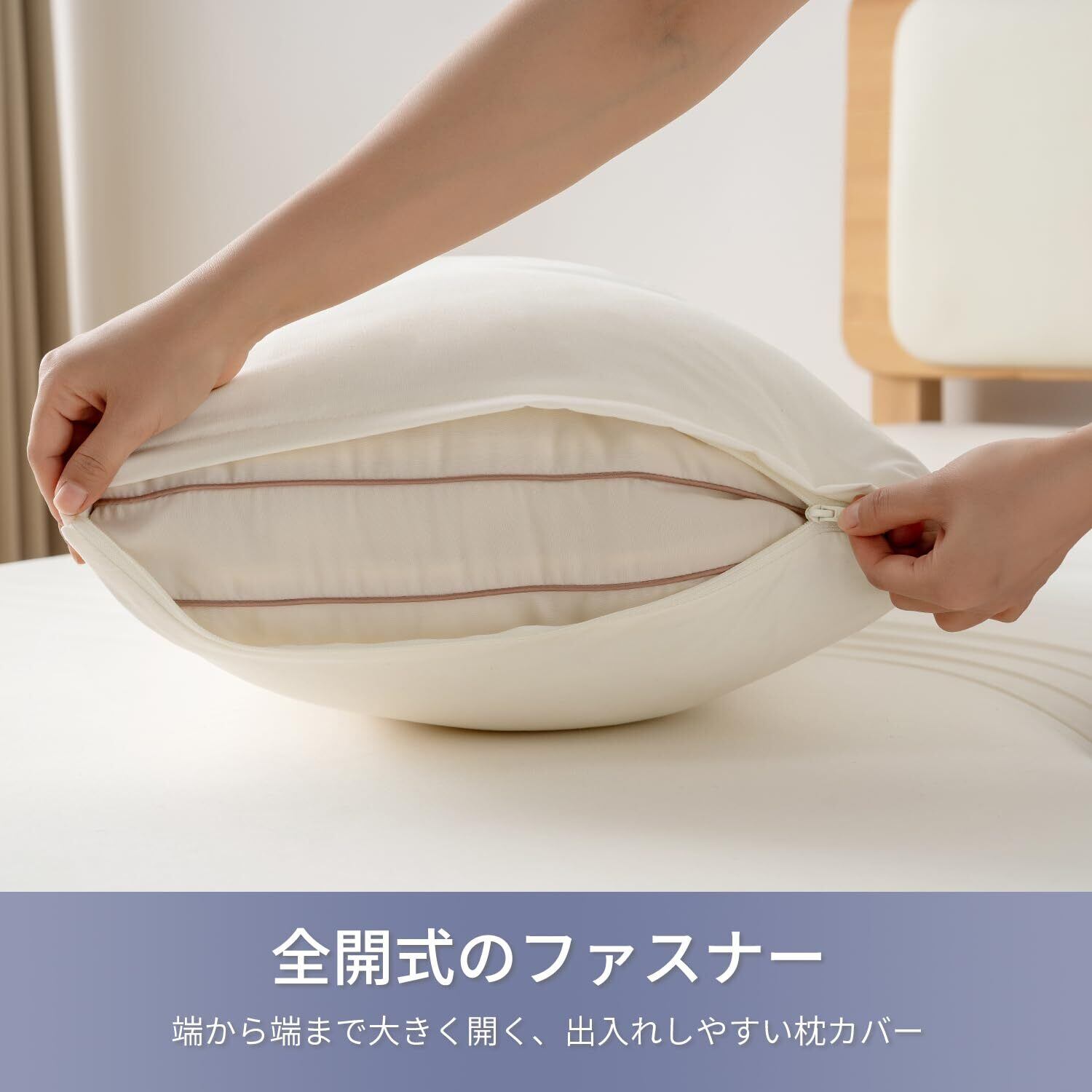 <耐久性を強化>:このピローケースは、耐久性を高めるために、縫い目でより強力なステッチ構造を備えています。頑丈な全開ファスナーを採用するため、使いやすくて、スムーズです。