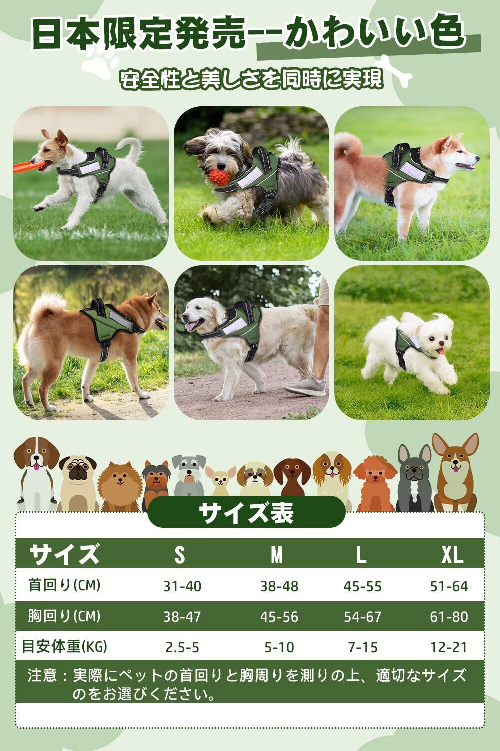 【ドッグトレーナー推薦】OGURIYA 犬 ハーネス 喉に優しい 小型犬 中型犬 大型犬 着脱簡単 超可愛い色 ネームプレート 夜間反射 サイズ調整可能 犬体工学に基づいた 7色選択(アーミーグリーン, M)