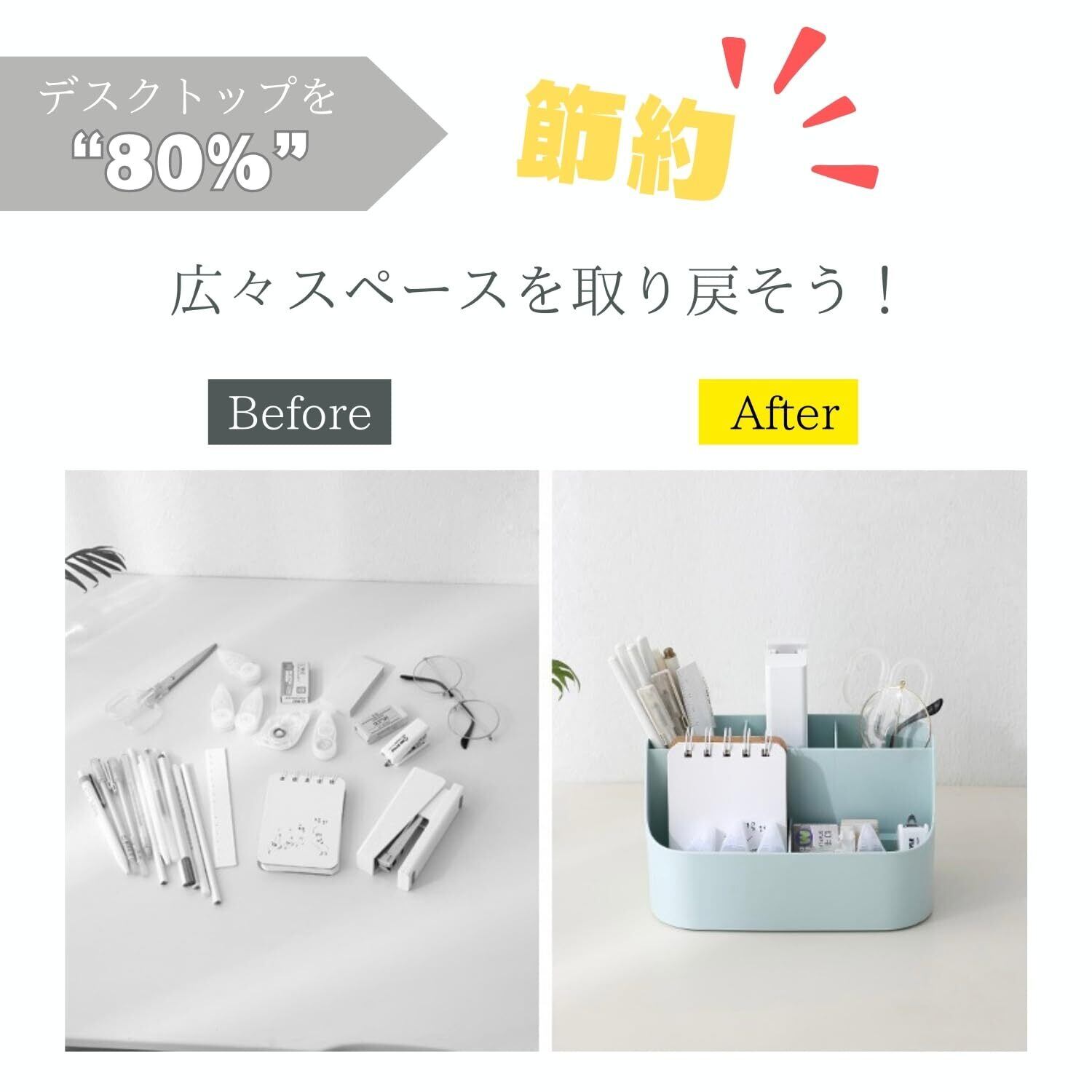 【デスク周りをすっきり整頓】机の上に散らばりがちな文房具や小物を簡単に収納でき、デスクをすっきりとした状態に保てます。スペースを取らない設計で、効率的な作業環境をサポートします。