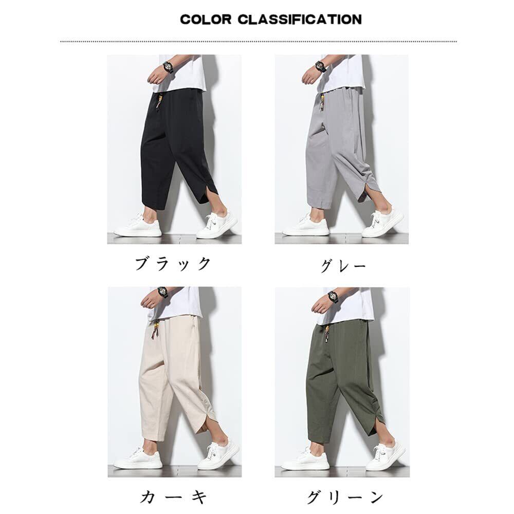[GUTHONG] ズボン メンズ 夏服 サルエルパンツ ワイドパンツ 大きいサイズ 九分丈 無地 テーパードパンツ 調整紐 通気性 ゆったり カジュアル パンツ メンズ 春 夏 秋
