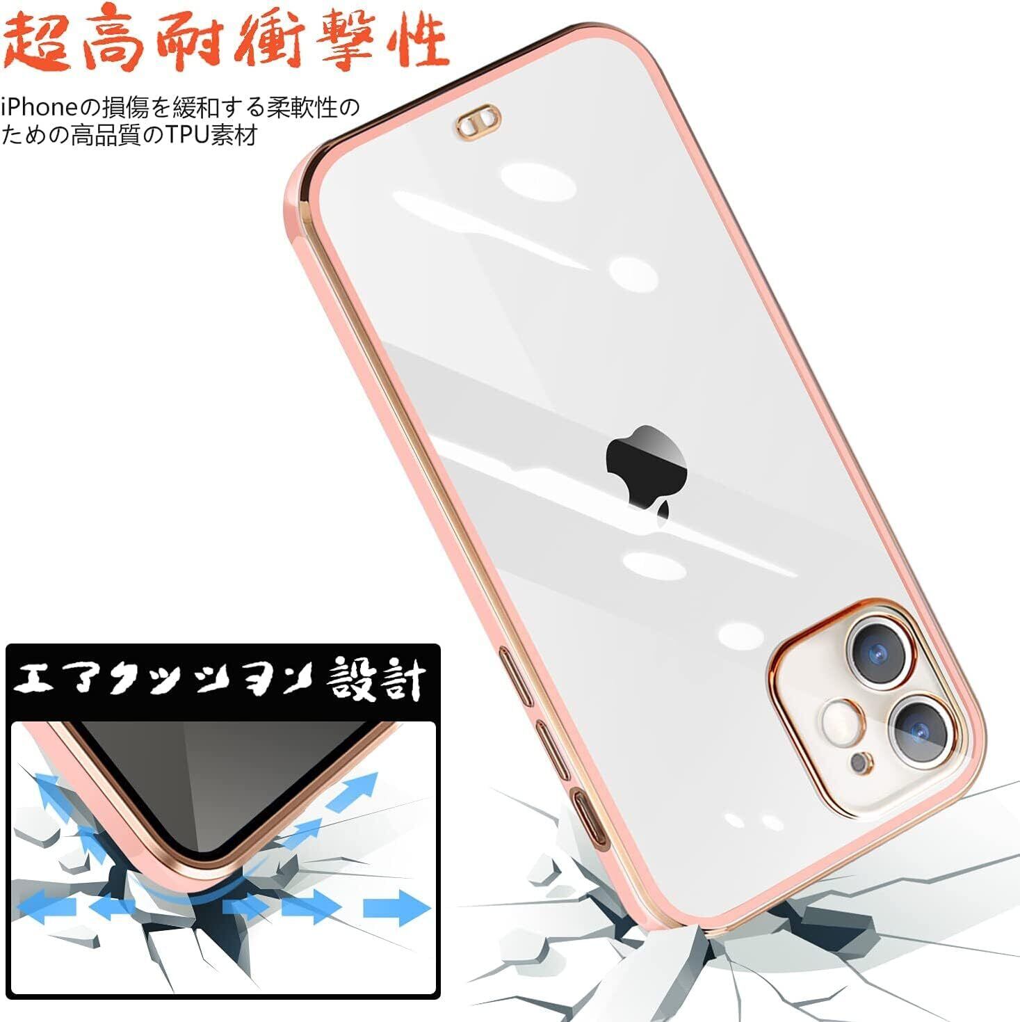 iPhone11 用の ケース クリア いphone11 スマホケース カバー 透明 可愛い かわいい 韓国 耐衝撃 薄型 人気 メッキ加工 アイフォン11(桜 ピンク)