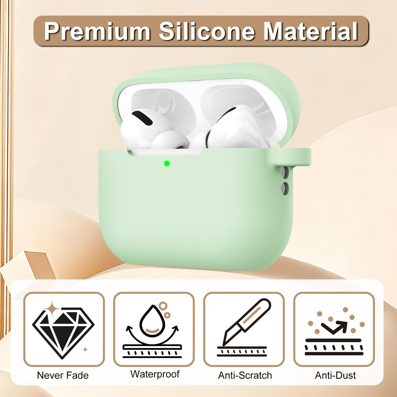 MILPROX AirPods Pro 3 ケース(2025)エアーポッズ プロ 第3世代 専用ケース シリコン ソフト 全面保護 耐衝撃 防震 防塵 落下/紛失防止 ワイヤレス充電対応 カラビナ&シリコン製ストラップ付き(ミントグリーン)