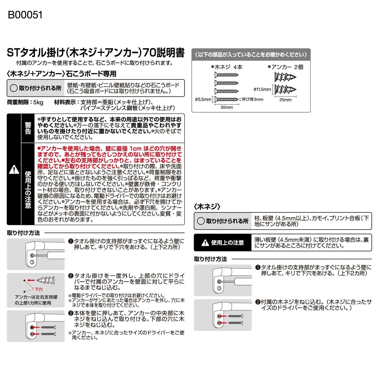 レック STRONG タオル掛け 70 (木ネジ + アンカー) 全長70cm 石こうボード用 B00051シルバー70cm(ストロング)
