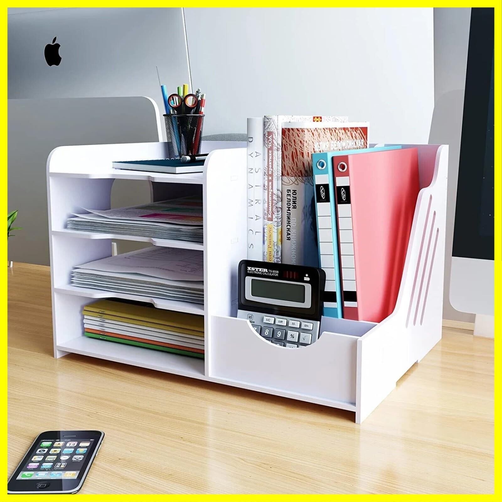 【卓上収納ラック】収納力が良い卓上書類ケースです。お好みに合わせて組み立てるには、2つの方法があります。多段数間仕切りデザインで、大きいな物品から小物まできれいにおしゃれに収納できます。手紙やA4用紙、書類、ファイル、フォルダーなどのオフィスでの収納に最適です。収納力抜群で仕事の効率もアップします!