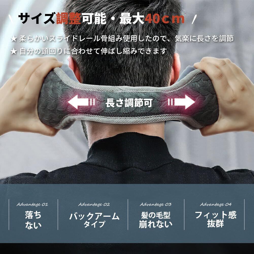 【バックアームタイプ・安心】バックアームタイプのイヤーマフで、保温と同時にヘアースタイルを気にする心配無し!眼鏡を動かすことなく、頭や耳を優しく包み込み、髪を乱す心配はありません。耳に装着されていると同時に、マフラーやヘルメットを着用することができます。サイズは調整できて、柔らかで長時間つけても耳が痛くなりにくいです。