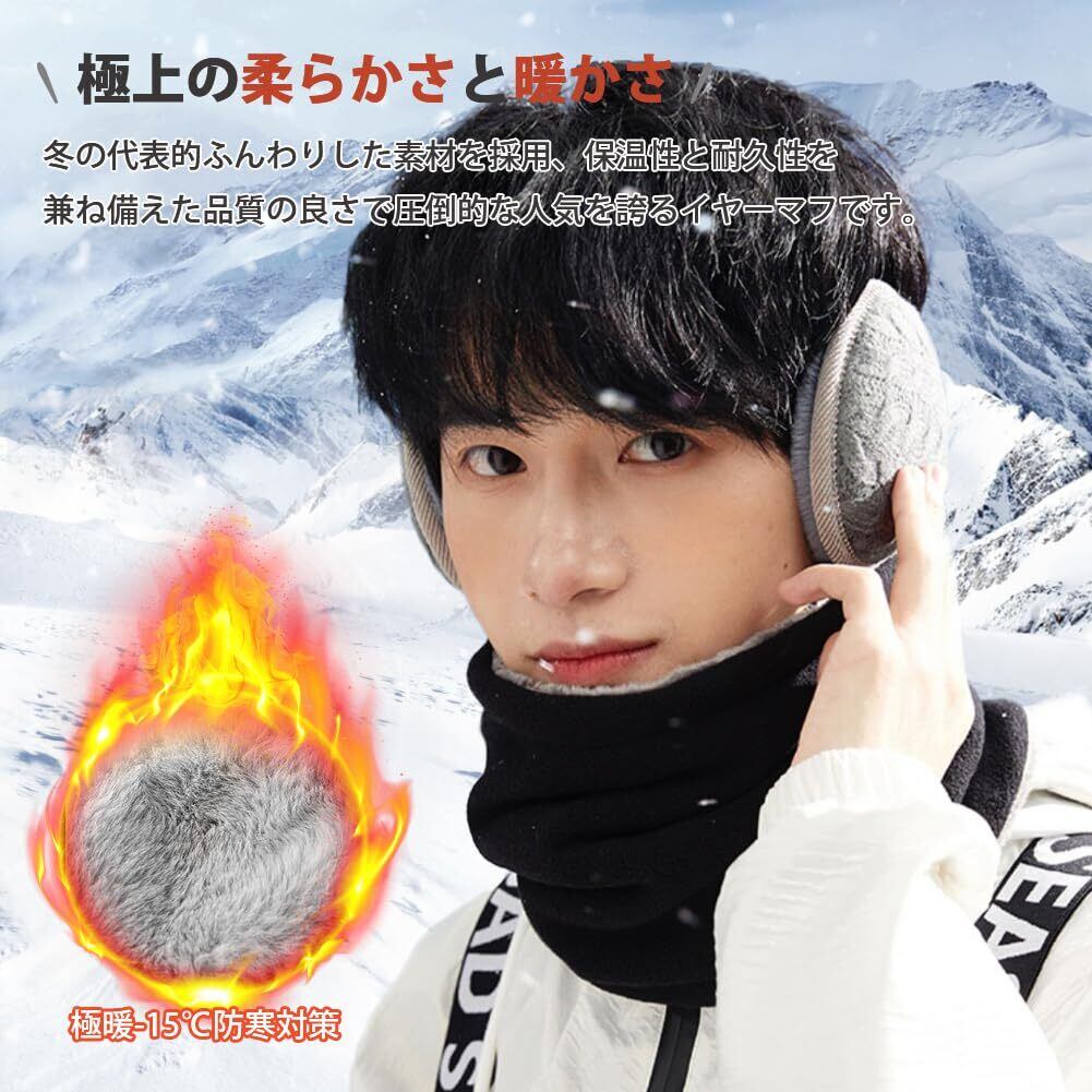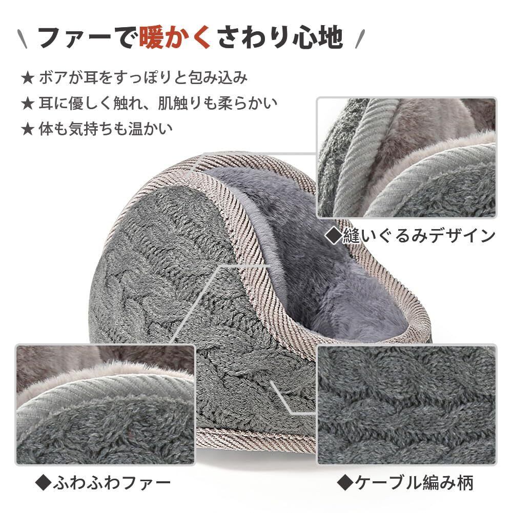 [PALAME] イヤーマフ イヤーウォーマー 冬 防寒 極暖ふわふわ裏起毛・180度折畳み・肌に優しい・肉厚ボア ニット 耳カバー 耳あて バックアーム コンパクト ストレスフリー 防風 保温 調節可能 通勤通学 アウトドア 男女兼用
