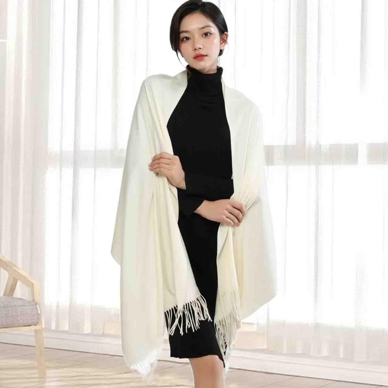 巻アレンジはもちろん、羽織りにも膝掛けにも使える。カシミヤタッチなので、ウールが苦手な方にもオスス
