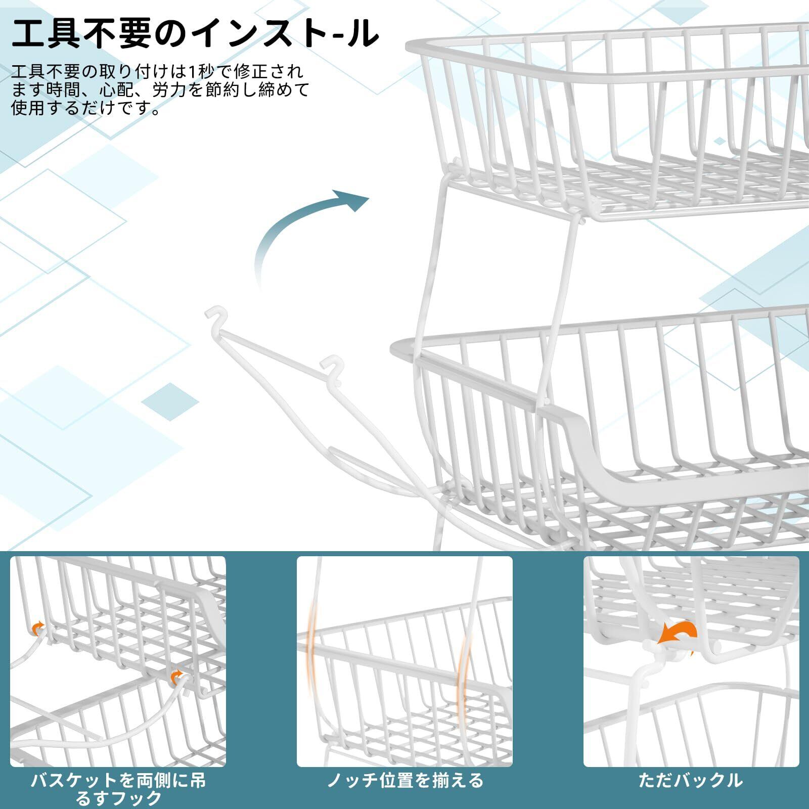「多機能収納バスケット」このキッチンシェルフは、果物や野菜の保管はもちろん、調理器具や日用品の整理にも最適です。3段のスタッキングバスケットにより、空間を有効活用でき、料理や生活をより快適にサポートします。