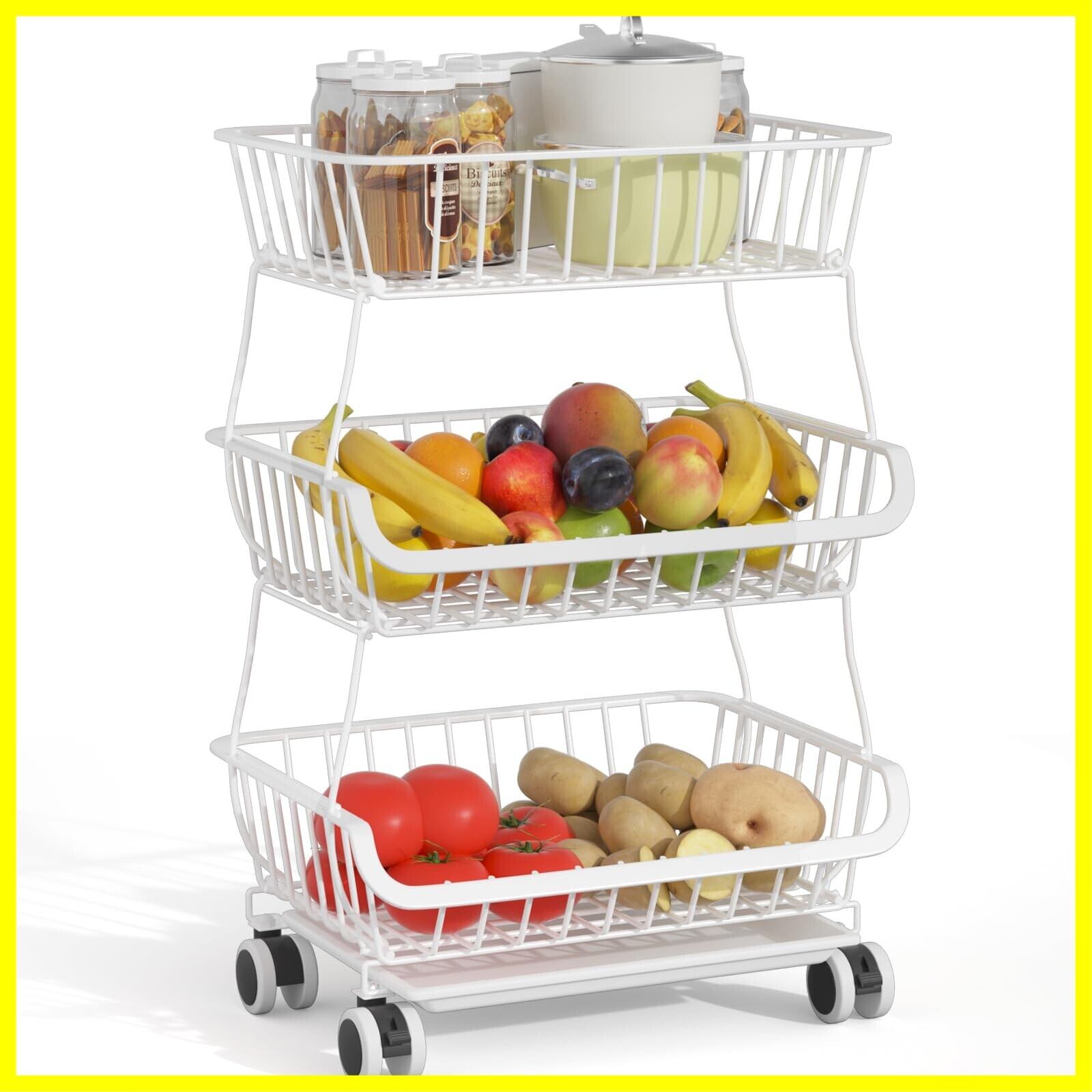 【多機能収納】果物や野菜、調味料やキッチンツールを整理整頓するための万能収納スタッキングバスケット。キッチンや家庭内のあらゆる場所で使用できる便利なキッチンワゴンです。白色のシックなデザインがどんなインテリアにもマッチし、機能性とスタイルを兼ね備えています。