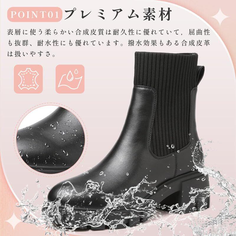 「防水機能で雨の日も安心」このブーツは防水仕様なので、突然の雨でも心配なし。秋や冬の悪天候でも安心して履け、外出時のストレスを軽減します。