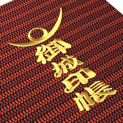 ・甲冑柄の織物に、武将の兜デザインと「御城印帳」を刺繍した豪華な表紙です。 ・左ページにご城印(ポケット)、右ページに記念スタンプ(白紙)、表/裏両面同じ仕様の全60ページ・30ポケットの蛇腹式御城印帳です。 ・MサイズとLサイズがございます。 ・表紙の兜デザイン及び「御城印帳」文字は刺繍で仕上げていますので立体感があります。 ・本文(中身)は当店が御城印帳のために作り上げた、片面(左ページ)PPポケット仕様です。 ・白い奉書紙を使った本文は、右ページが白紙で記念スタンプを押すスペースになっています。