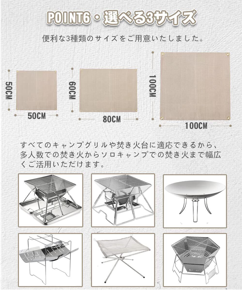 【高耐熱性】耐熱性や断熱性が高い素材で作られており、耐熱温度は500℃となり、熱や火の粉などによる地面へのダメージの軽減や、延焼の防止などの役割を果たします。より環境に配慮したキャンプができます。