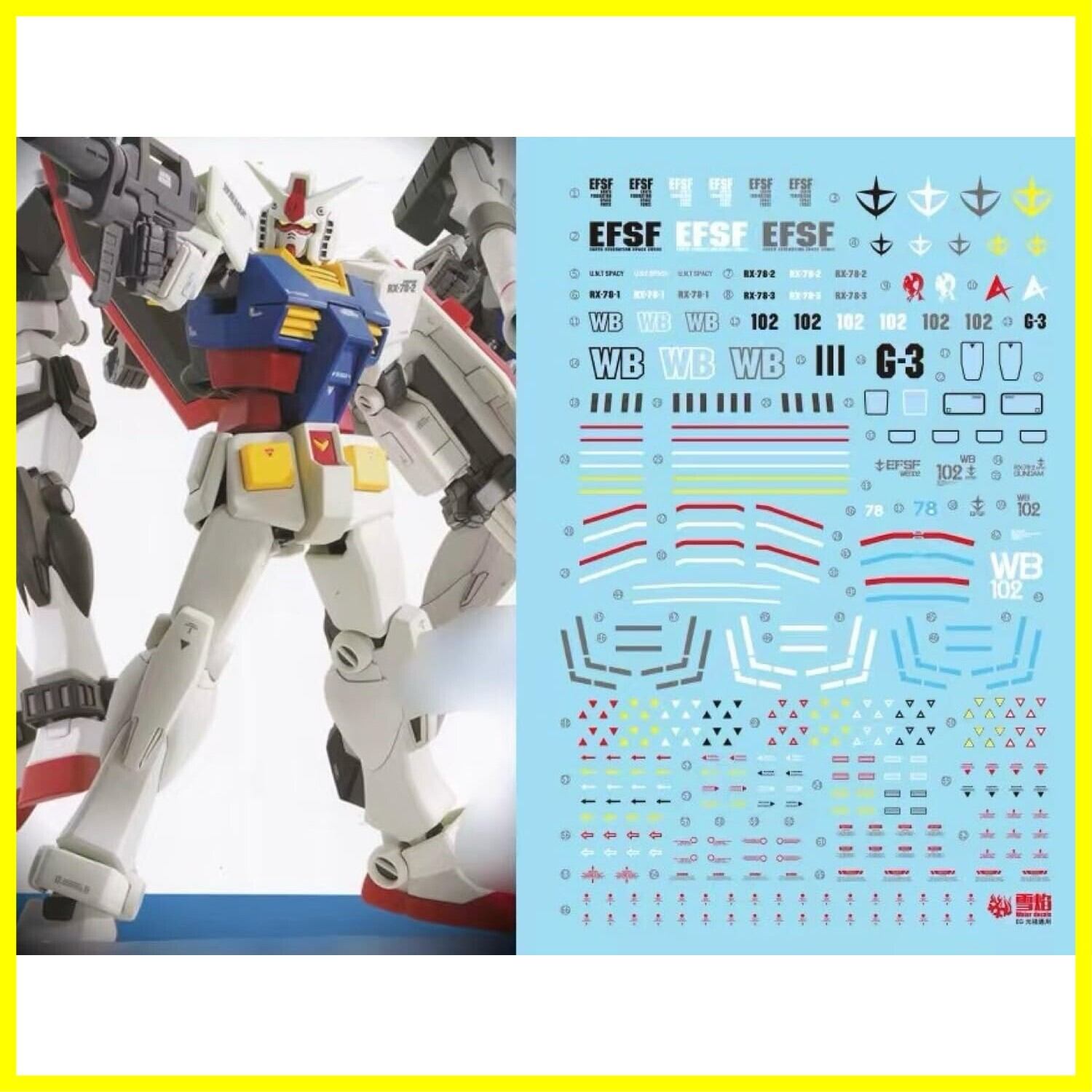 「あなたのガンプラをさらに素敵に仕上げる!蛍光!! HG RG EG 1/144 ロボット MS 雪社ディテールアップデカール!」この水転写式デカールは、ENTRY GRADE 1/144 ガンダムをモデルにしており、細部にこだわったデザインが魅力です。あなたのガンプラを一層引き立てる、特別なアイテムです!