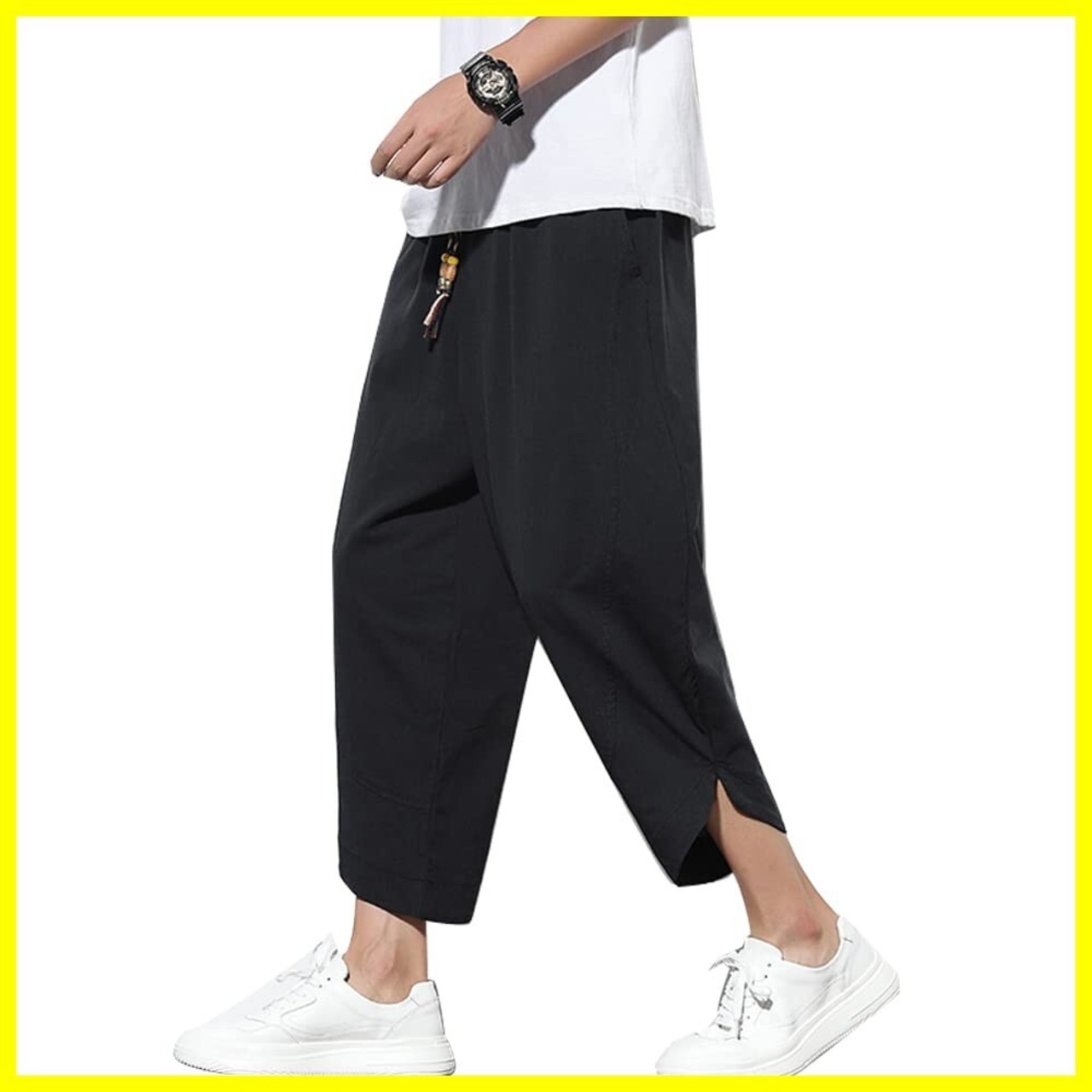 [GUTHONG] ズボン メンズ 夏服 サルエルパンツ ワイドパンツ 大きいサイズ 九分丈 無地 テーパードパンツ 調整紐 通気性 ゆったり カジュアル パンツ メンズ 春 夏 秋