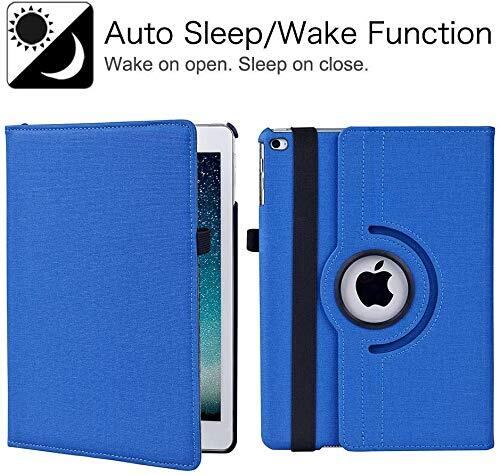 iPad 9.7 2018/2017ケース 新型(Newモデル)/iPad Air/iPad Air2カバー iPad 9.7インチ(第6、5世代)軽量 手帳型 360度回転スタンド オートスリープ機能 3段階調節可能 固定バンド 脱落防止耐衝撃 耐久性 おしゃれデニム生地 (ネイビー)