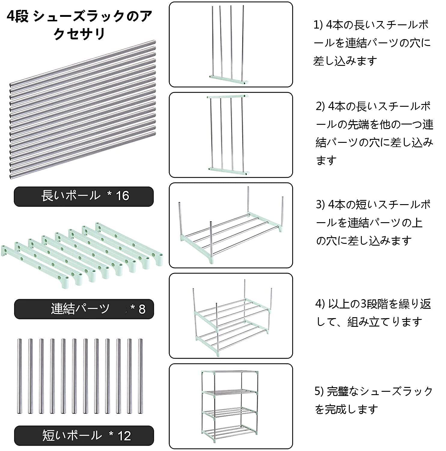 【組立簡単】工具不要の簡単組み立て式で、分解もクラクラ。スチールポールを穴に差し込むだけで、一人でも、簡単にできます 。靴収納ラック 3段(約):幅44*奥行25*高さ38CM、4段(約):幅44*奥行25*高さ56CM、8段(約):幅44*奥行25*高さ130CM