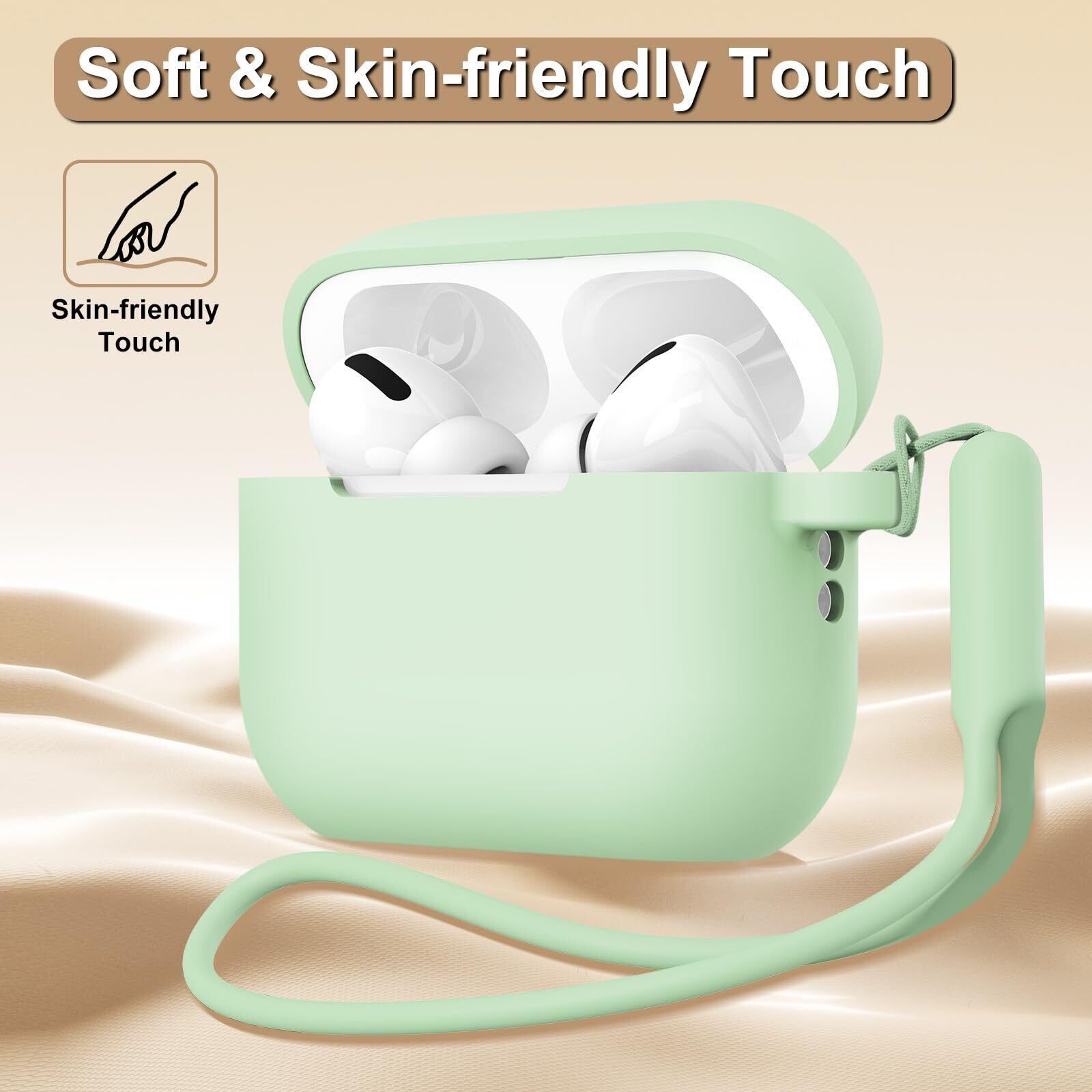 MILPROX AirPods Pro 3 ケース(2025)エアーポッズ プロ 第3世代 専用ケース シリコン ソフト 全面保護 耐衝撃 防震 防塵 落下/紛失防止 ワイヤレス充電対応 カラビナ&シリコン製ストラップ付き(ミントグリーン)