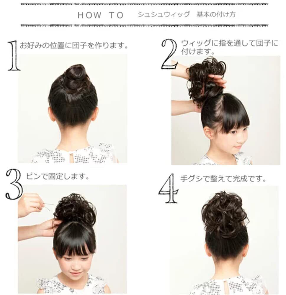 [InSomila] [インソミラ] キッズ シュシュ ウィッグ 2個入り お団子 エクステ カール つけ毛 髪飾り 和装 入園式 七五三 発表会 お祭り イベント