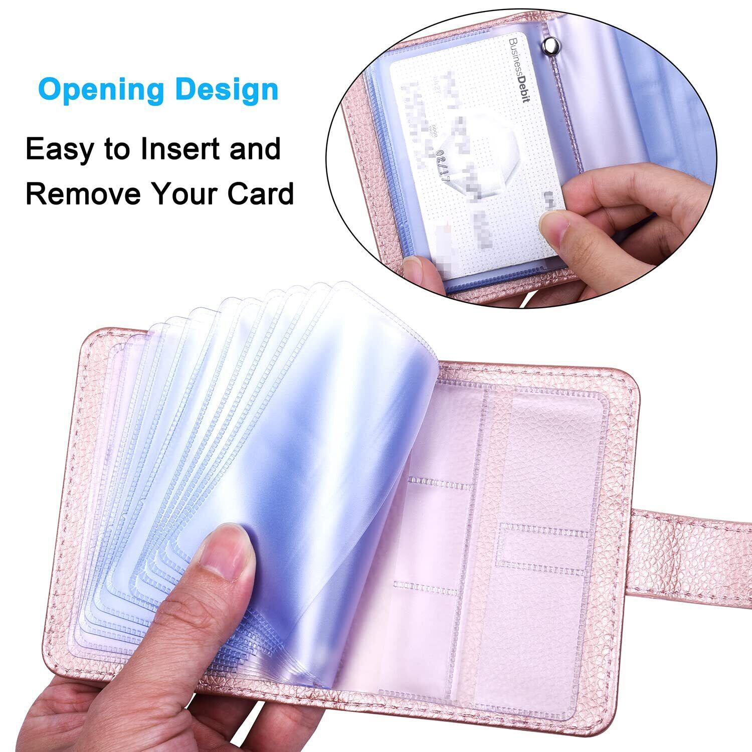 [Wisdompro] クレジットカードケース スキミング防止 カードファイル 透明 資格証/保険証/免許証/キャッシュカードケース ポイントカード入れ PUレザー 縦型 20枚収納 ローズゴールド