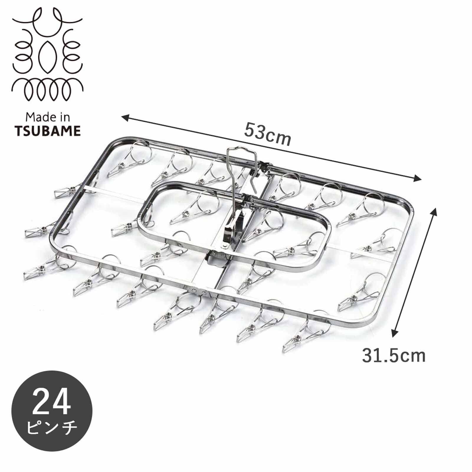下村企販 壊れにくくて永く使える ピンチハンガー 角型24ピンチ 【日本製】 ステンレス製 サビにくい ピンチが絡まりにくい 浴室乾燥OK 折りたたんでコンパクトに収納 部屋干し 室内 室外 洗濯物干し 燕三条 26448