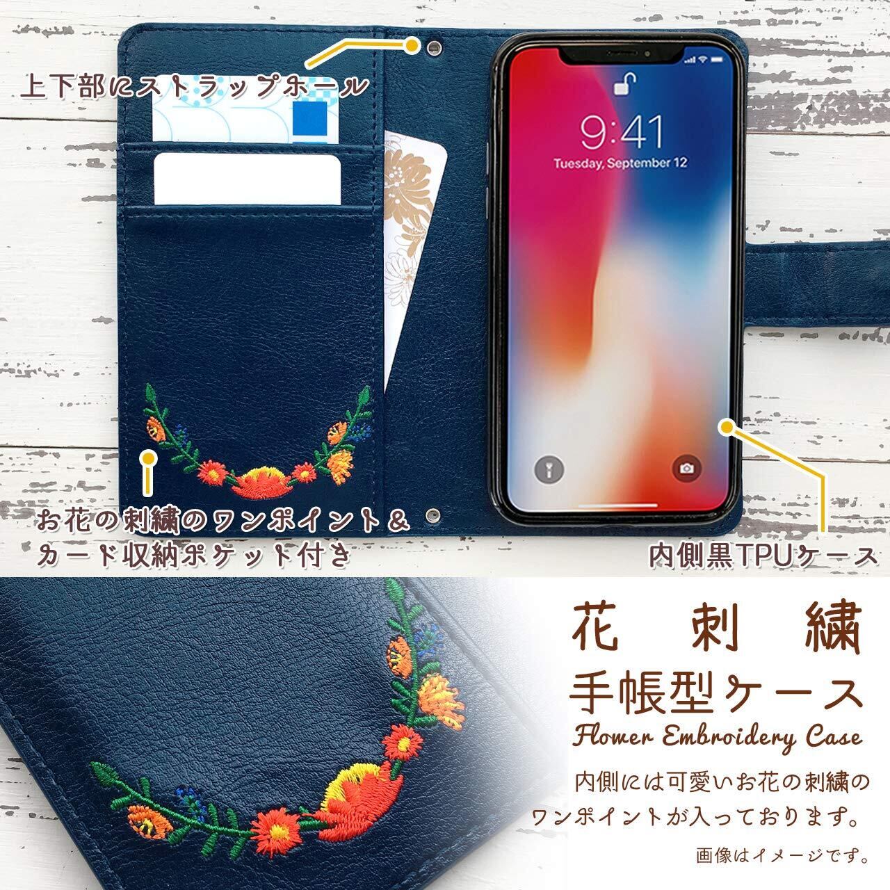 iPhone12 mini ケース カバー 手帳型ケース ケース カバー 手帳型 iPhone12mini iPhone 12 miniケース miniカバー アイフォン12 ミニ 【NB】 花刺繍 アイリスネイビー navy