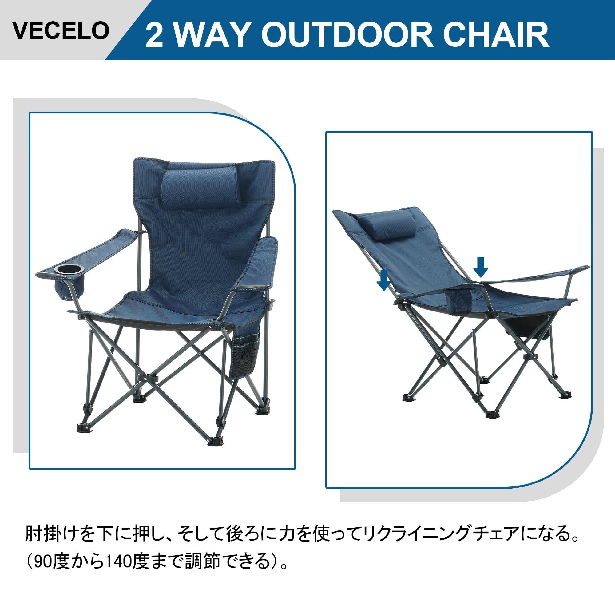 VECELO アウトドアチェア 椅子 アウトドア 折りたたみ椅子 コンパクトチェア キャンプ キャンプチェア ひんやり生地 軽量 カップホルダー付き ポケット付き ソロキャンプ リクライニングチェア 完成品 収束式 収納袋付属 携帯便利 耐荷重150kg お釣り 登山 お花見 ハイバック
