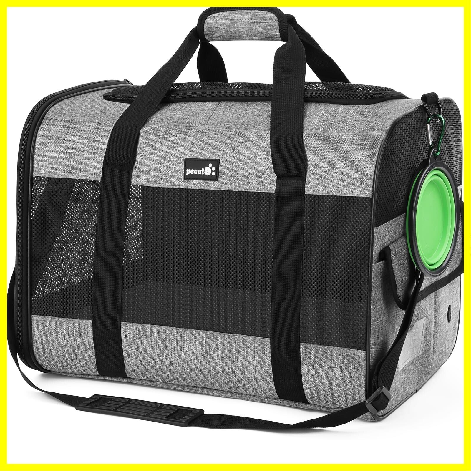 Pecute 猫 キャリー バッグ 手提げ キャリー ショルダー ペット キャリーバッグ 猫 ウサギ 小型犬 小動物用 リュック 通気性 折りたたみお出かけ ドライブ 旅行 通院 防災 避難用 猫食器付き
