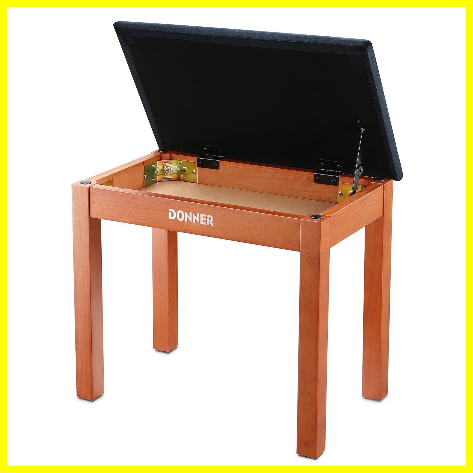 Donner ピアノ椅子 楽譜収納付き 木製 キーボードベンチ 安定感 座り心地よい 頑丈 滑り止め 140㎏耐荷重 幅52cm 奥行34cm 茶色