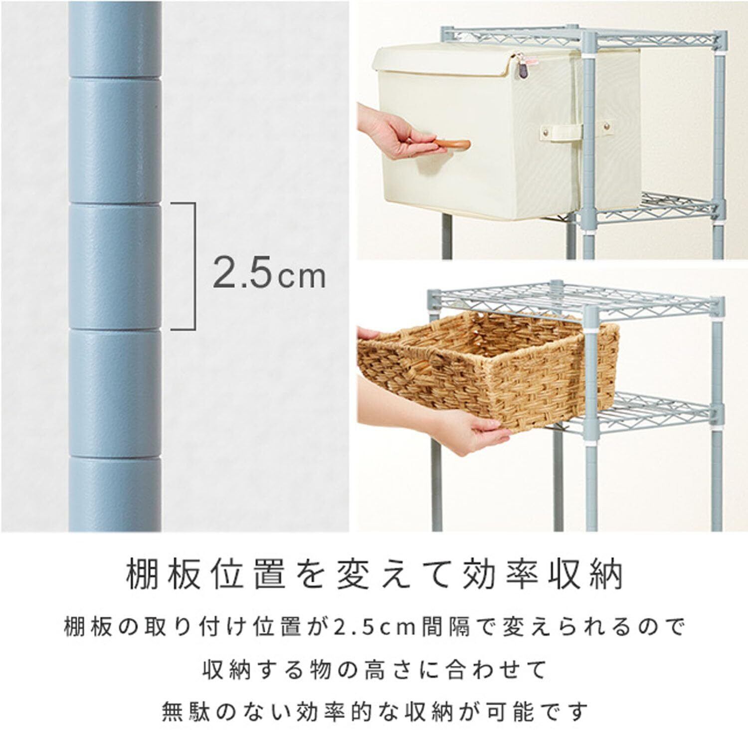 2.5cm単位で自由に調整ができる=収納物に合わせて無駄なく収納