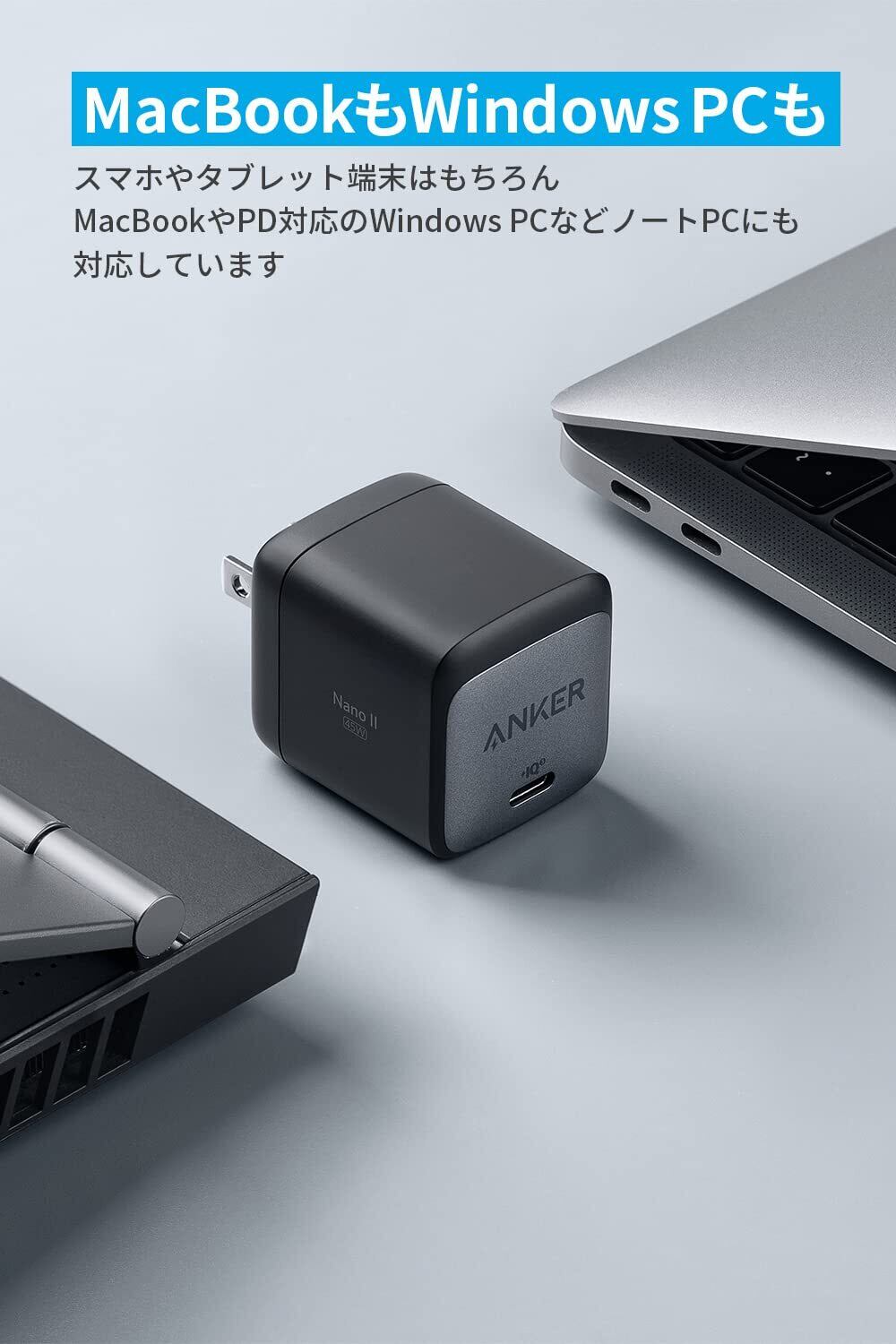 Anker Nano II 45W (PD 充電器 USB-C)【独自技術Anker GaN II採用/PD対応/PPS規格対応/PSE技術基準適合/折りたたみ式プラグ】MacBook Windows PC iPad iPhone Galaxy Android スマートフォン ノートPC 各種 その他機器対応 (ブラック)