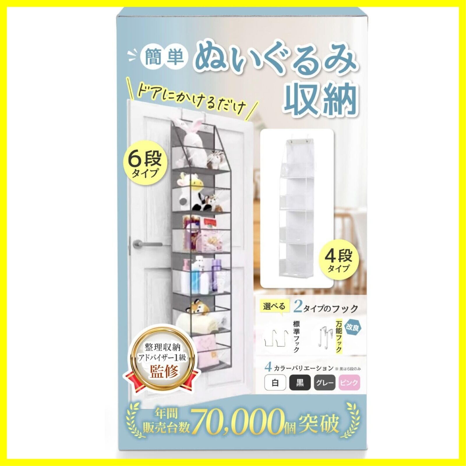 ぬいぐるみ 収納〈整理収納アドバイザー1級監修 〉大容量 ウォールポケット ぬいぐるみケース 扉掛け ドア掛 壁掛け(白, 4段)